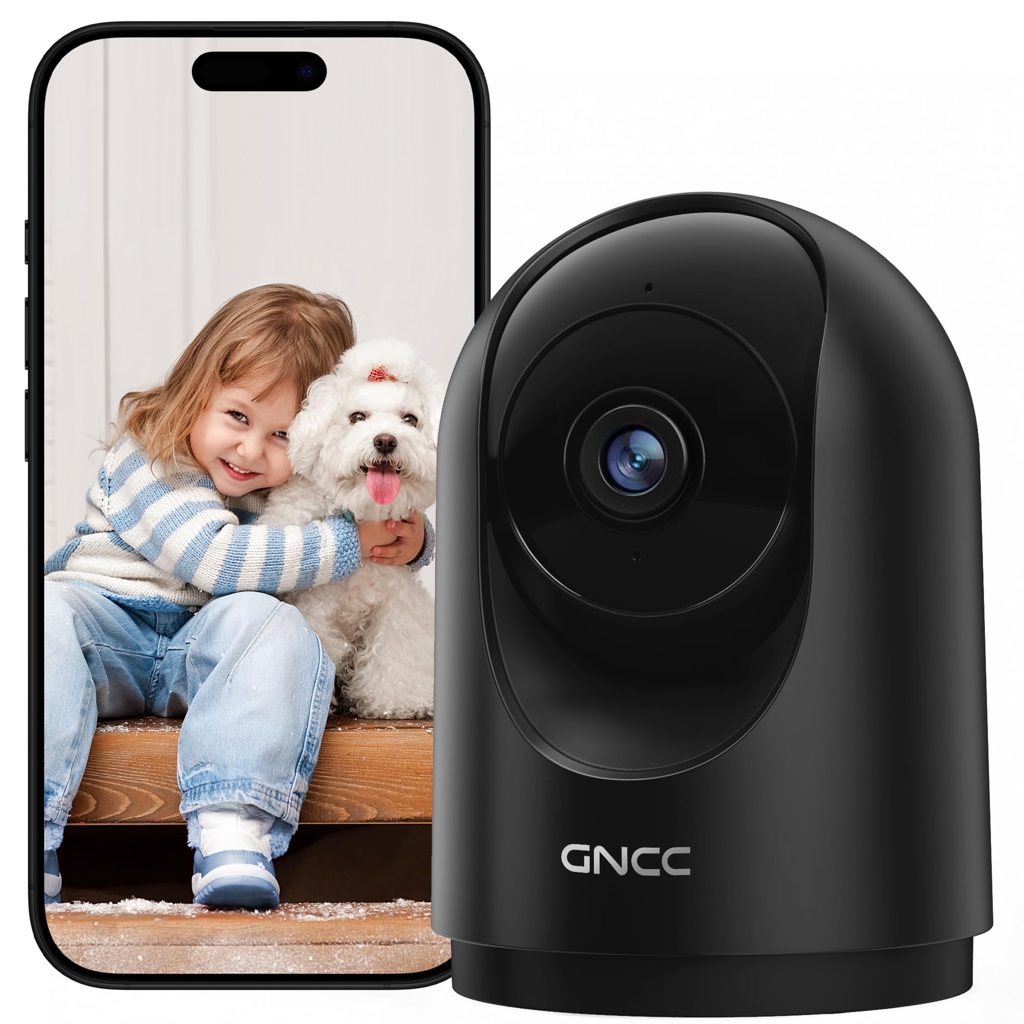 GNCC Cámara de seguridad 2K para interiores con WiFi de 360° para seguridad del hogar con detección de movimiento, cámara para mas