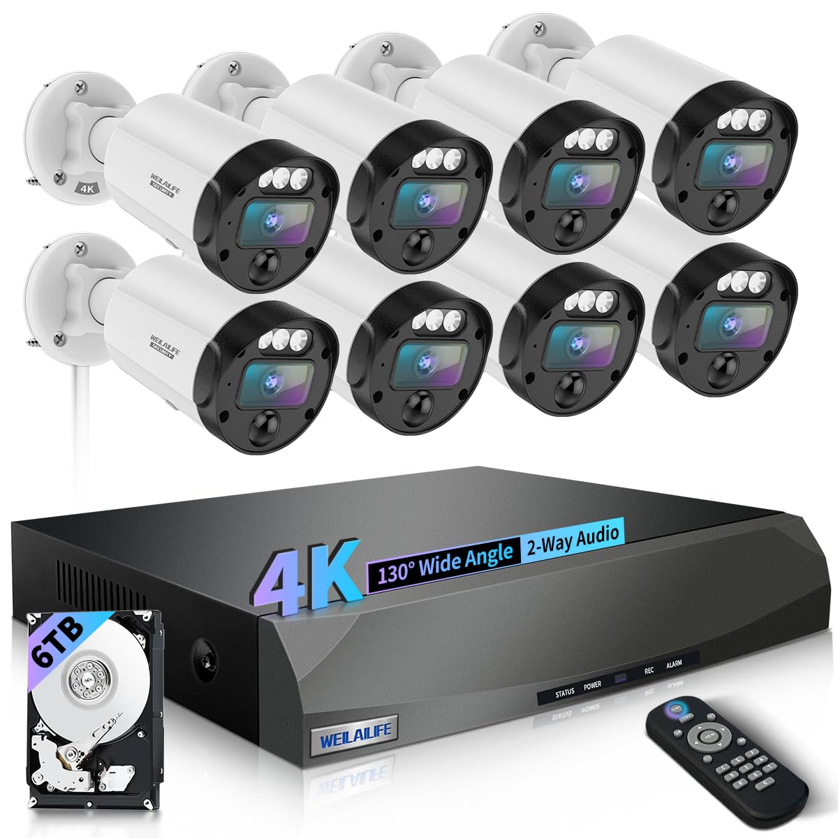 【Ultra gran angular de 130°】 Sistema de cámara de seguridad con cable para exteriores, sistemas de videovigilancia casera, cámaras