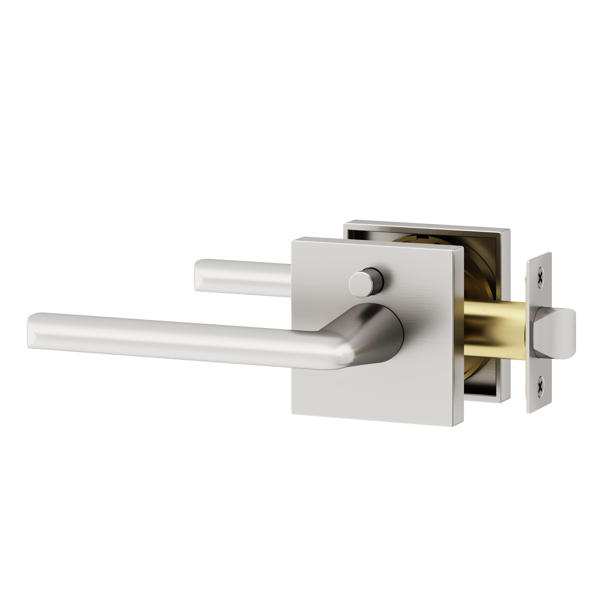 Mirra – Paquete de 1 manija de privacidad para puerta de baño y dormitorio con botón interior reversible en níquel cepillado