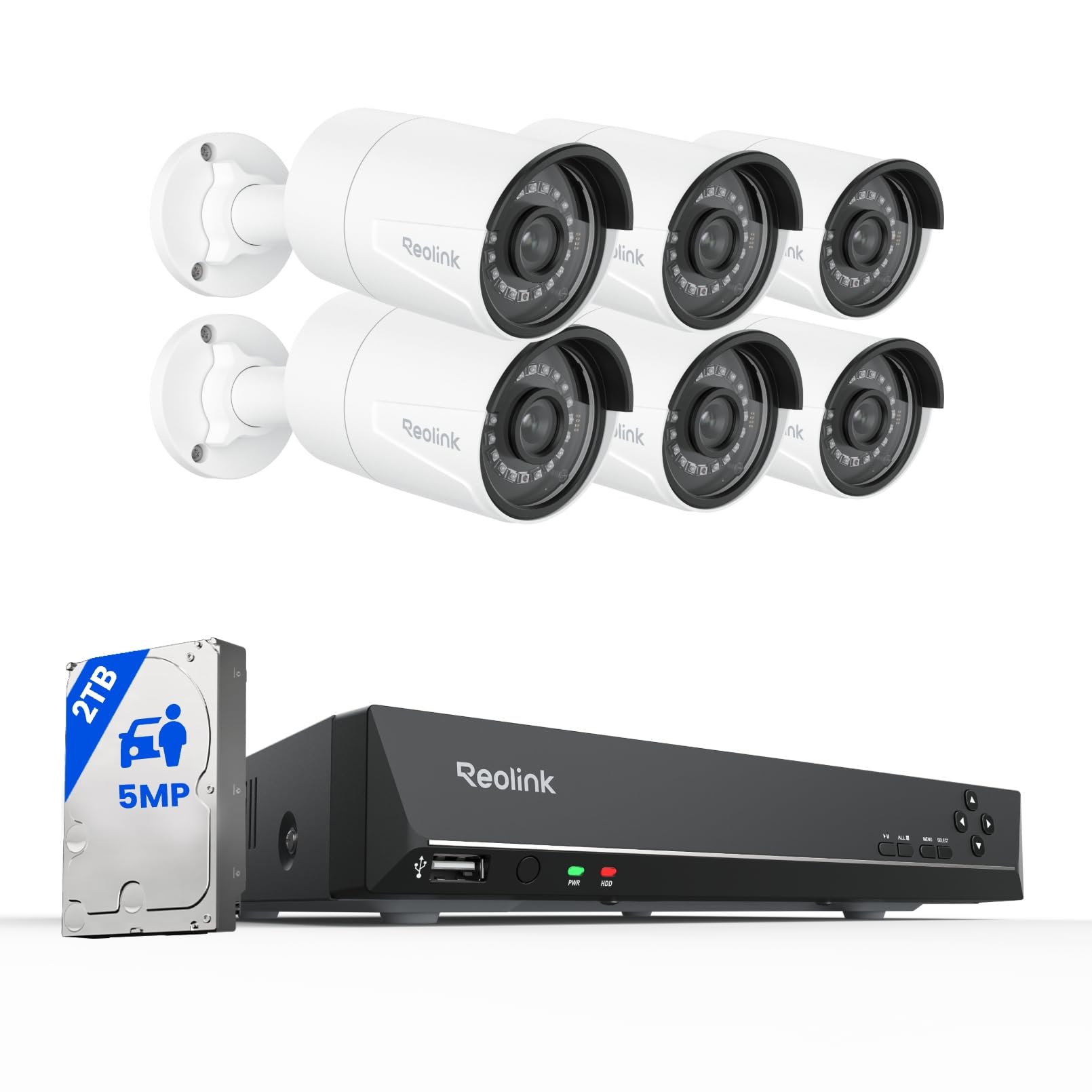 REOLINK Sistema de cámara de seguridad para el hogar de 8 canales, 5 MP, 6 cámaras IP PoE con cable para exteriores con detección