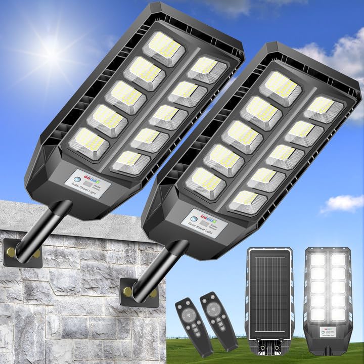 CEDIO Luces solares de 5000 W para exteriores, IP66 impermeables, luces de calle solares para exteriores, luz de calle LED de 6500
