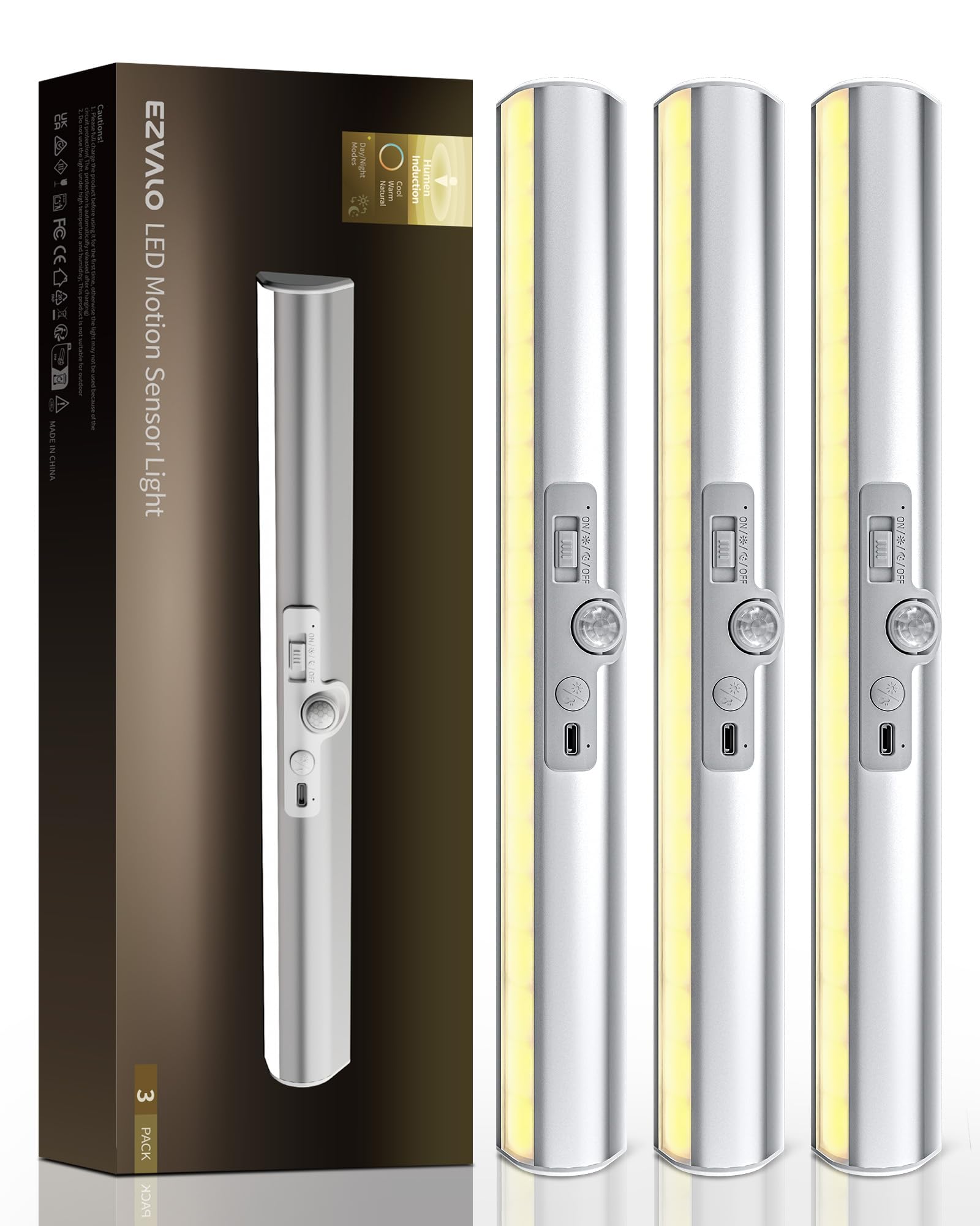 EZVALO Luces de armario con sensor de movimiento con sensor giratorio, iluminación recargable de armario de 1800 mAh, 3 temperatur