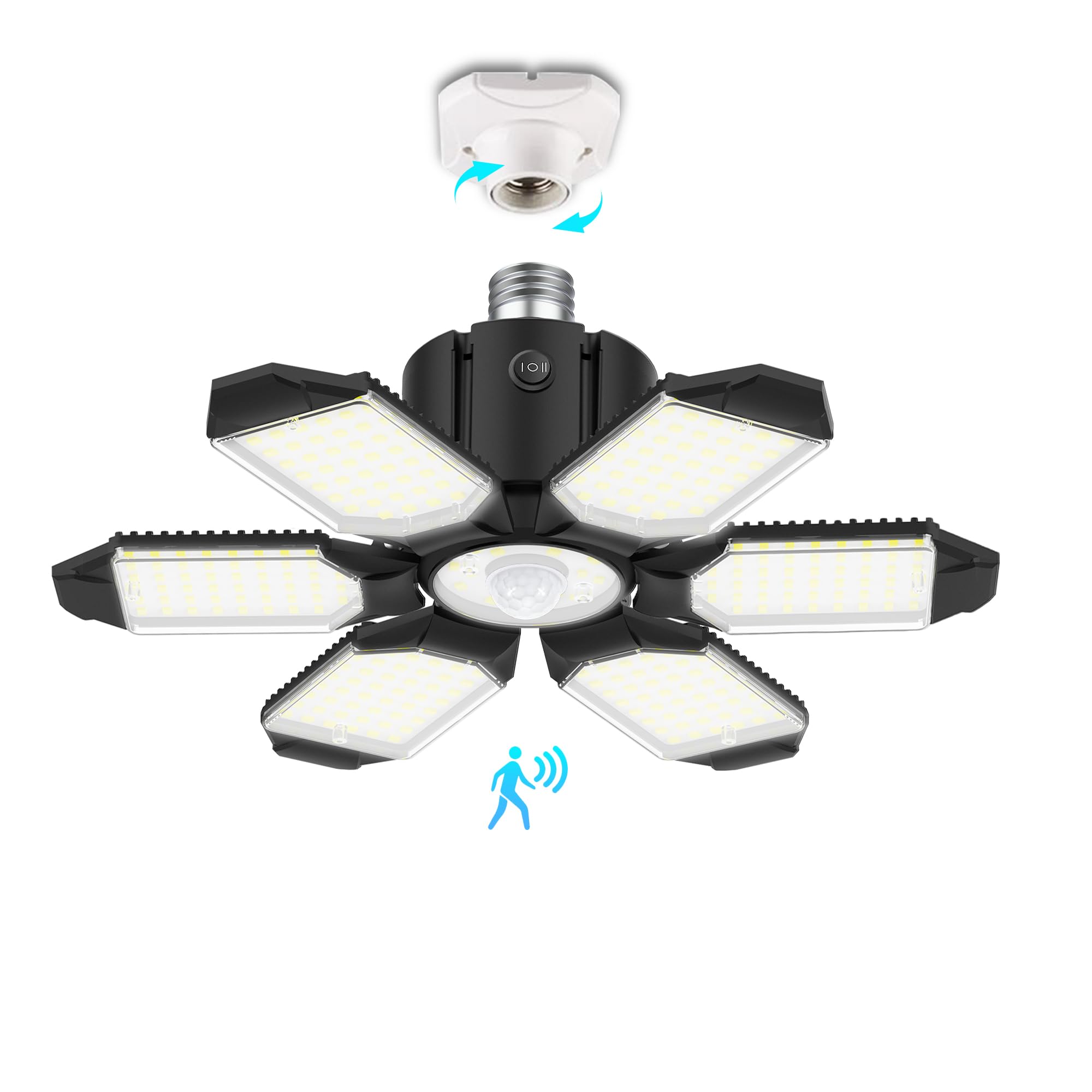 BRAINIAC Luz de garaje con sensor de movimiento con 3 modos de interruptor, E26/E27 Luces de garaje atornilladas LED de techo acti