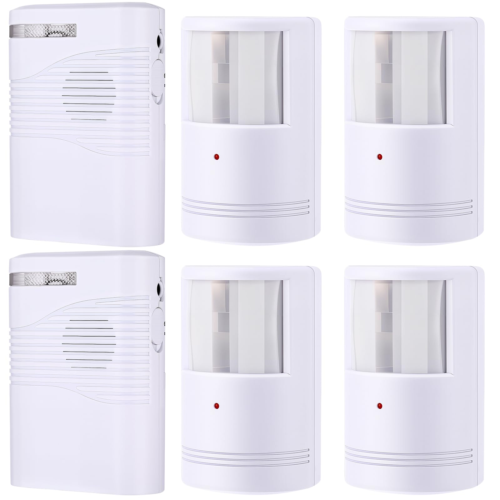 Qualirey 2 juegos de alarma inalámbrica para entrada de vehículos, incluye 2 receptores y 4 sensores de movimiento infrarrojos, se