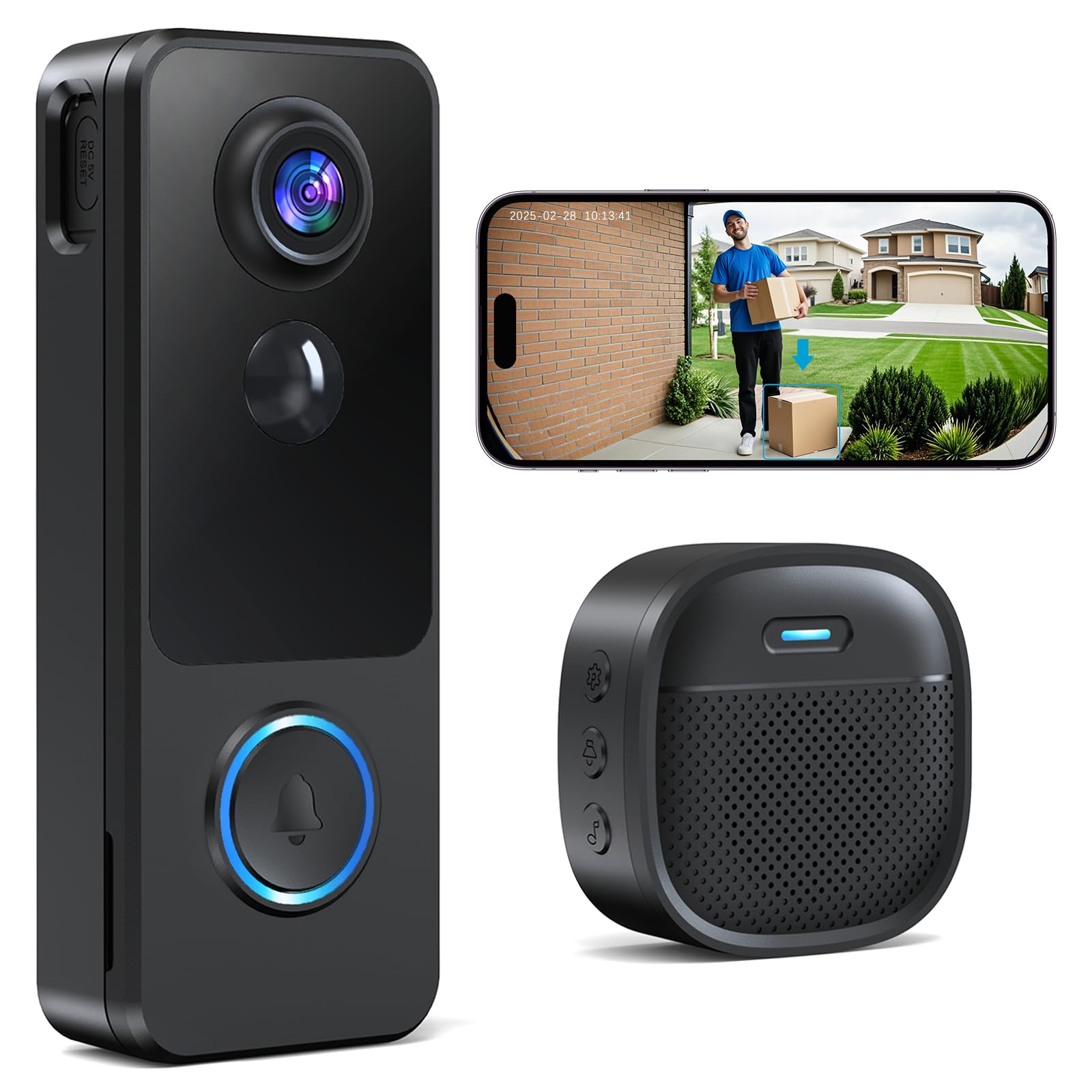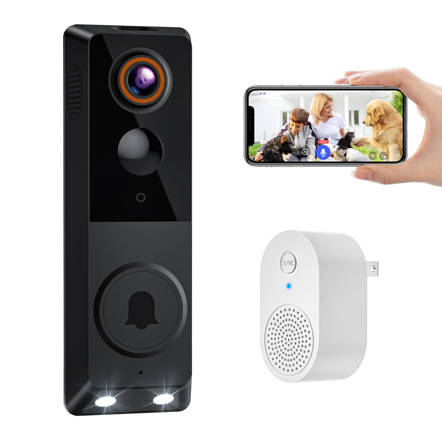 Timbre de video inteligente 1080P inalámbrico, detección humana AI, vista en vivo, audio de 2 vías, timbre incluido, visión noctur