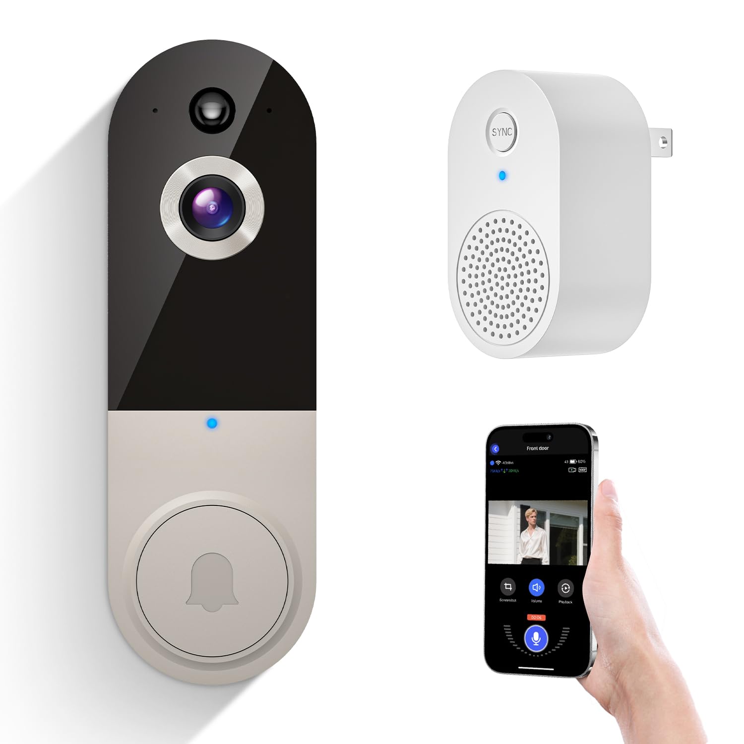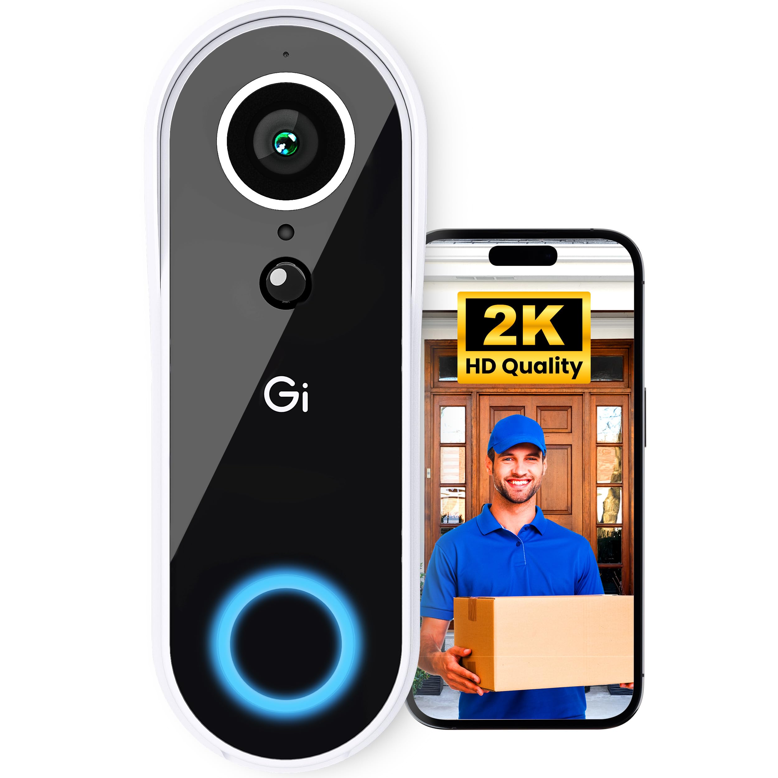 GEARit Cámara inteligente de timbre de video – Cámara de video inalámbrica 2K QHD para timbre de puerta, batería recargable de 6 m