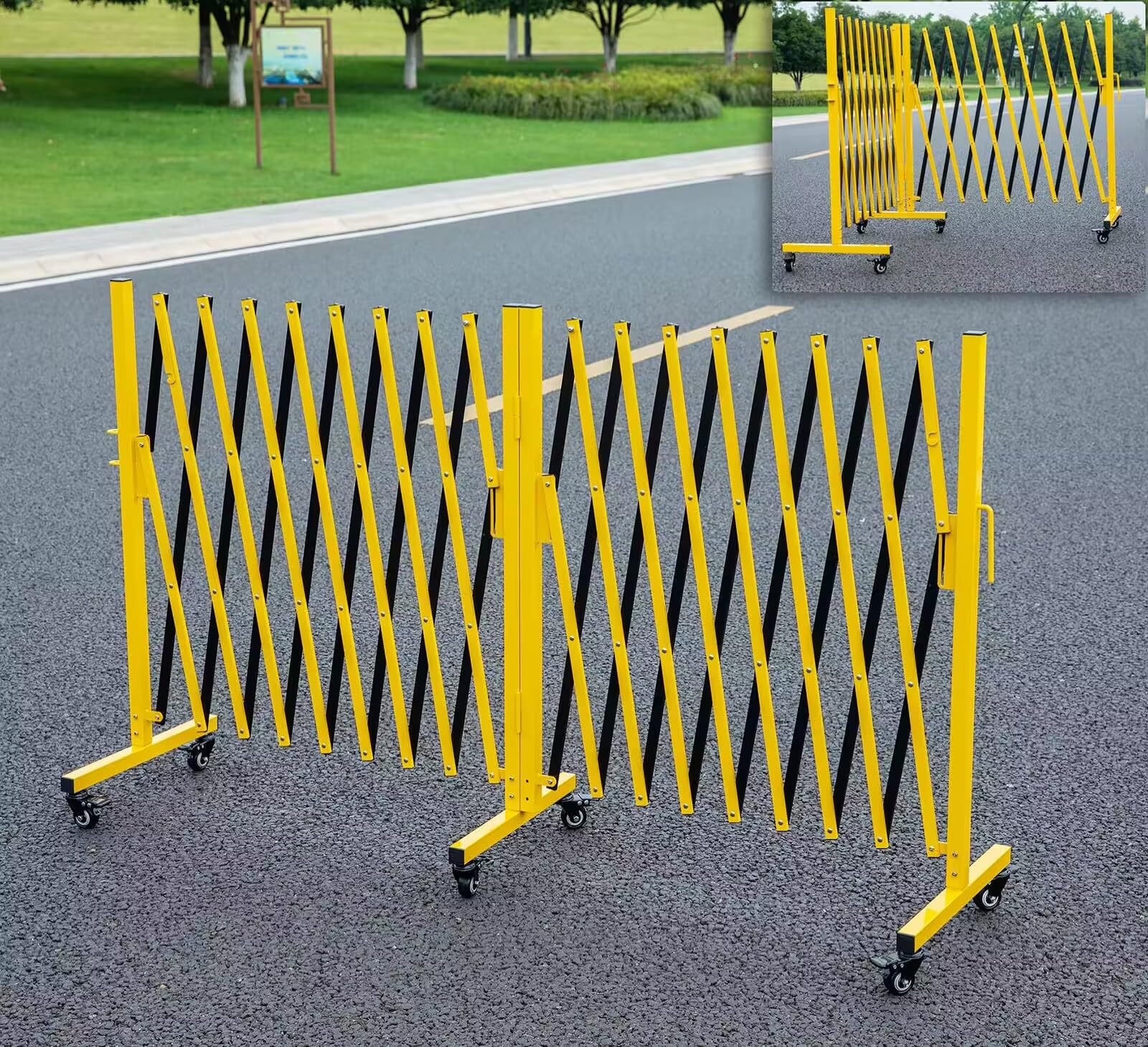 Barricada de metal expandible, rotación de 0 a 180 grados, barrera de seguridad de acordeón, 18 pies, valla retráctil portátil par
