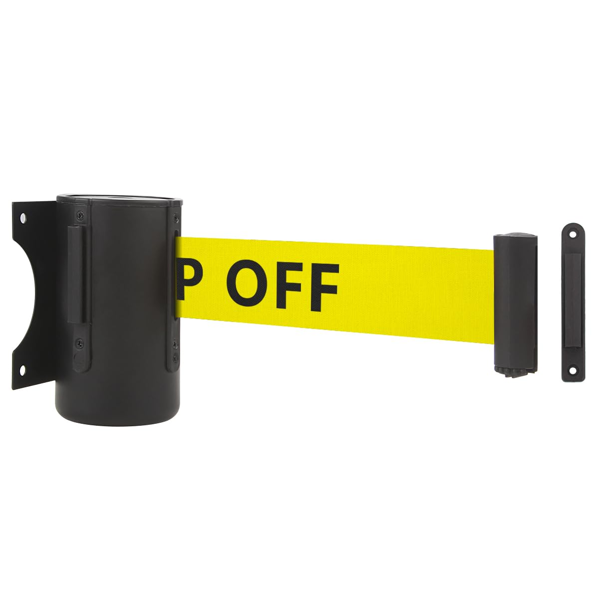 Crowd Control Warehouse – Barrera de cinturón retráctil de montaje en pared fija Serie CCW WMB-125 – Cinturón de rayas diagonales
