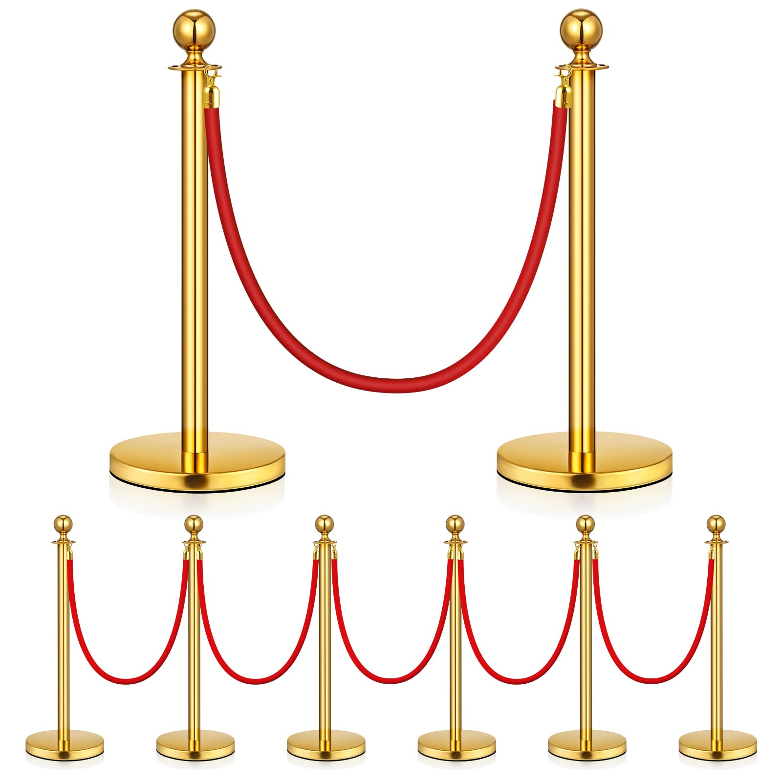Paquete de 8 soportes de acero inoxidable mejorados y cuerdas de terciopelo de 5 pies, cuerdas extendidas de alfombra roja, postes