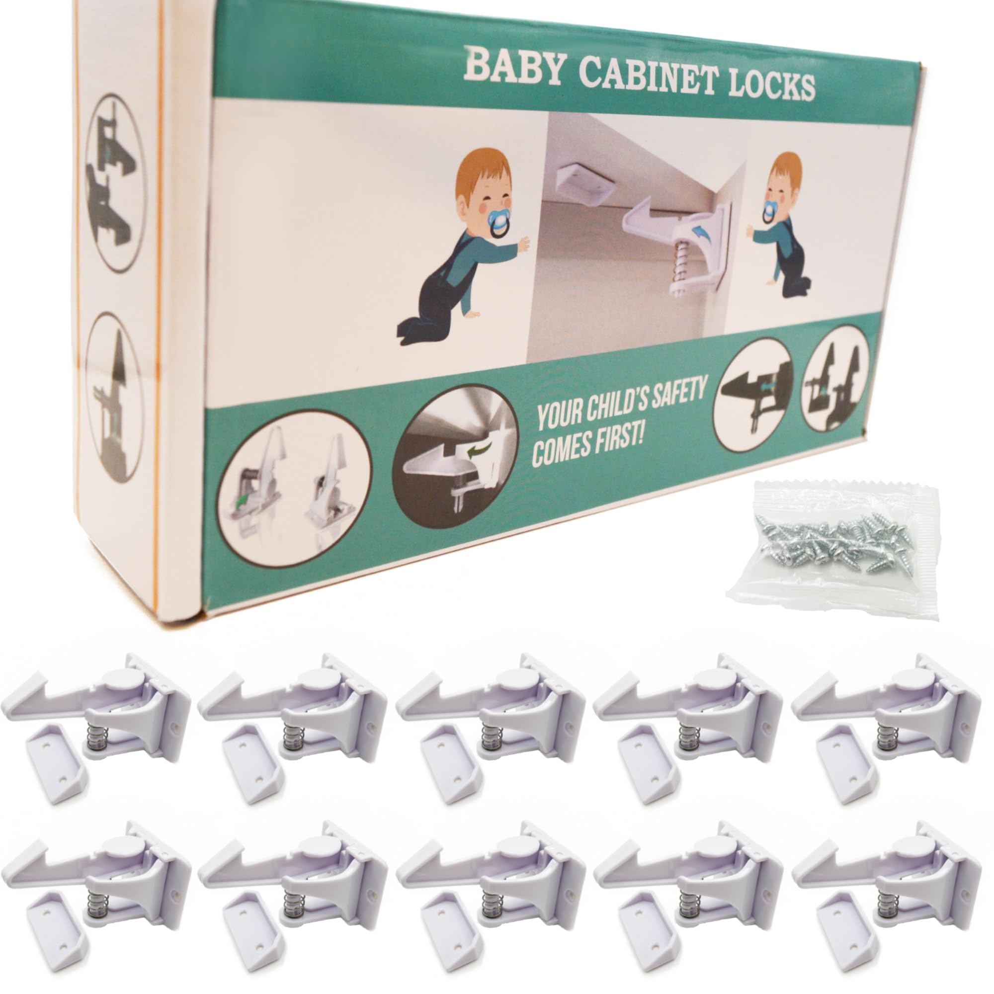 Cerraduras a prueba de niños para puertas de gabinete (paquete de 12 + regalo) – Cerraduras de gabinete para niños, cerraduras de