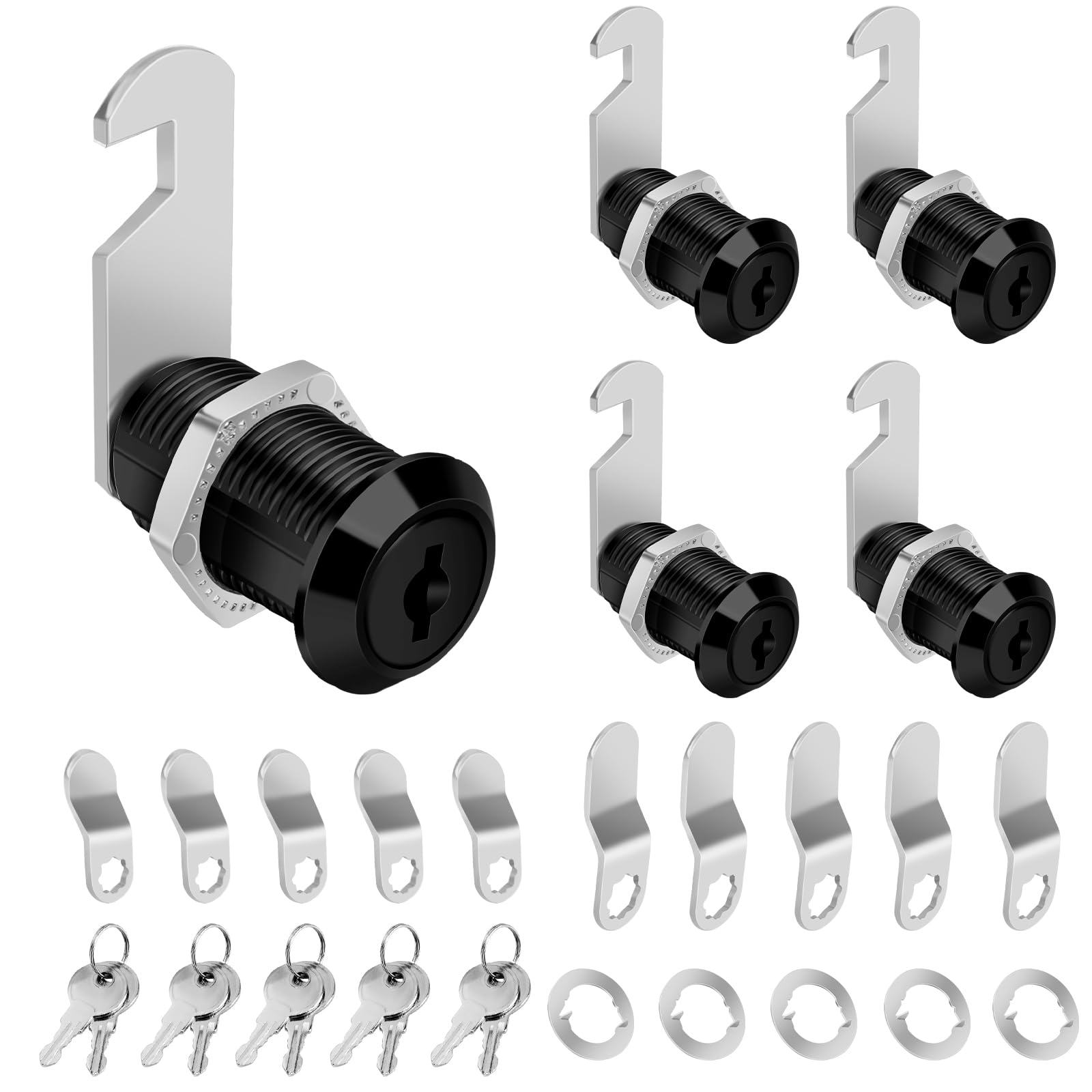 Cerradura de leva para gabinete de 1-1/8 pulgadas con llaves, 5 cerraduras negras para gabinete con llave igual, cajones de archiv