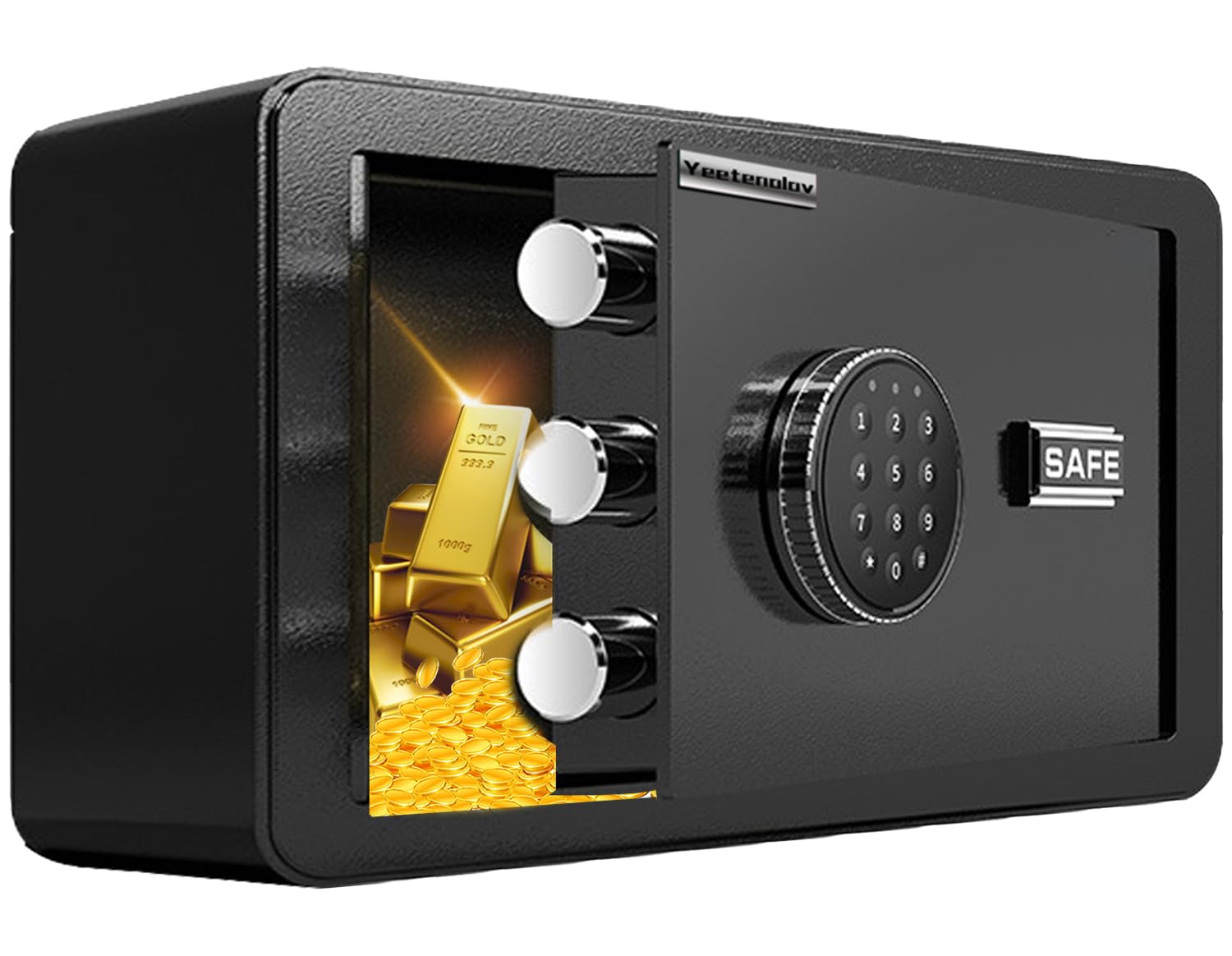 Goldenkey Caja fuerte pequeña con llaves y código para dinero en efectivo y monedas, mini banco digital seguro para niños para el