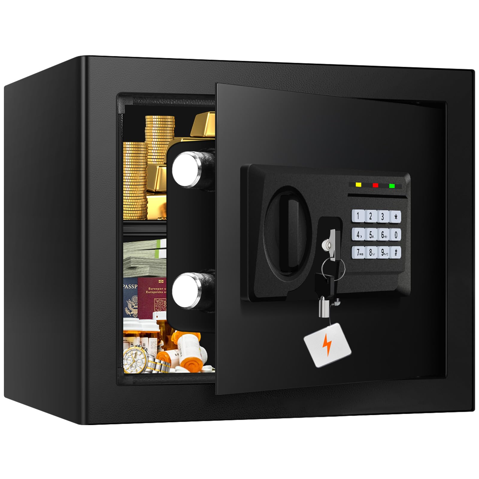TOTOY Caja de seguridad pequeña de 1.2 pies cúbicos para documentos del hogar con caja de batería de emergencia, caja de seguridad