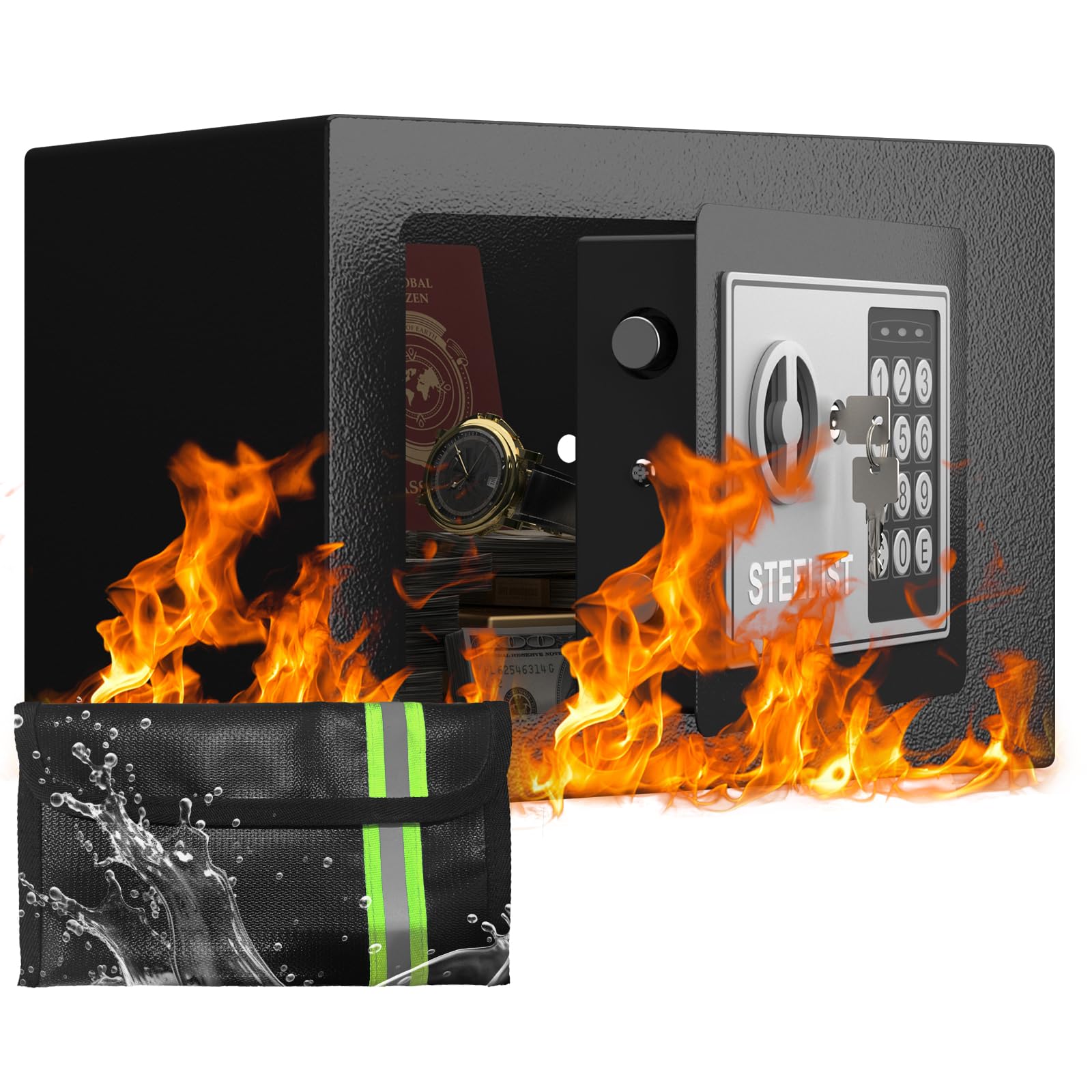 Caja de seguridad ignífuga de 1.2 pies cúbicos para uso doméstico, caja fuerte contra incendios con bolsa de documentos ignífuga,