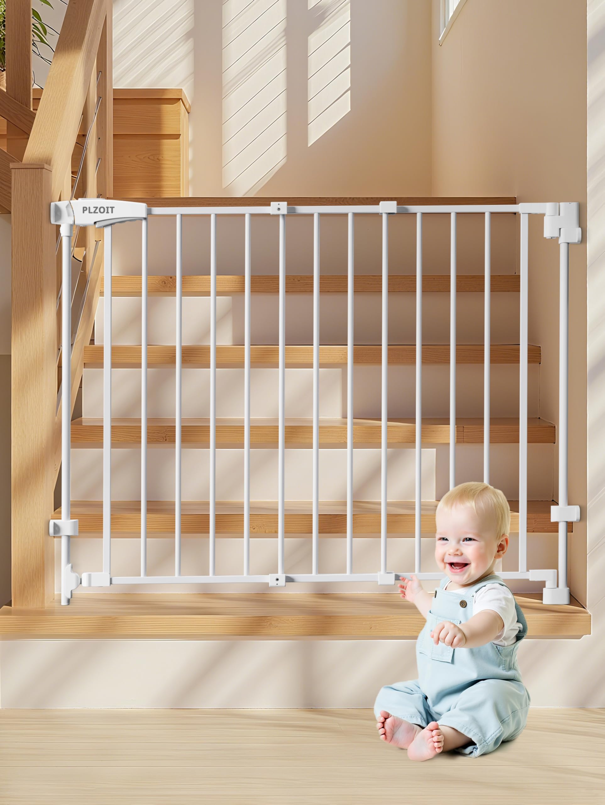 Puerta de bebé sin barra inferior de 29.5-43 pulgadas para escaleras, puertas de bebé de cierre automático para puertas, montaje e