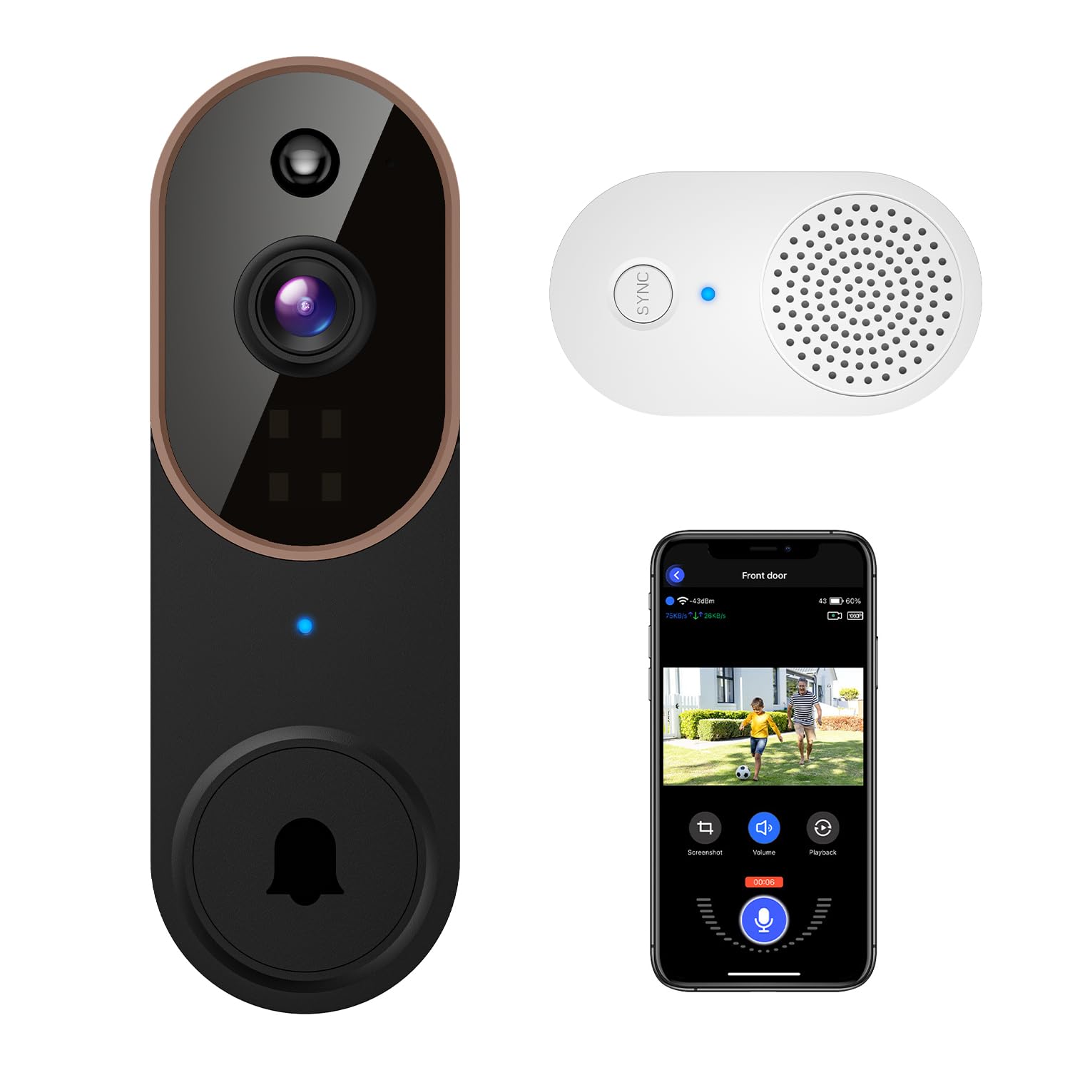 Cámara de timbre de video 1080P, detección humana inteligente, almacenamiento en la nube, timbre incluido, vista en vivo, audio de