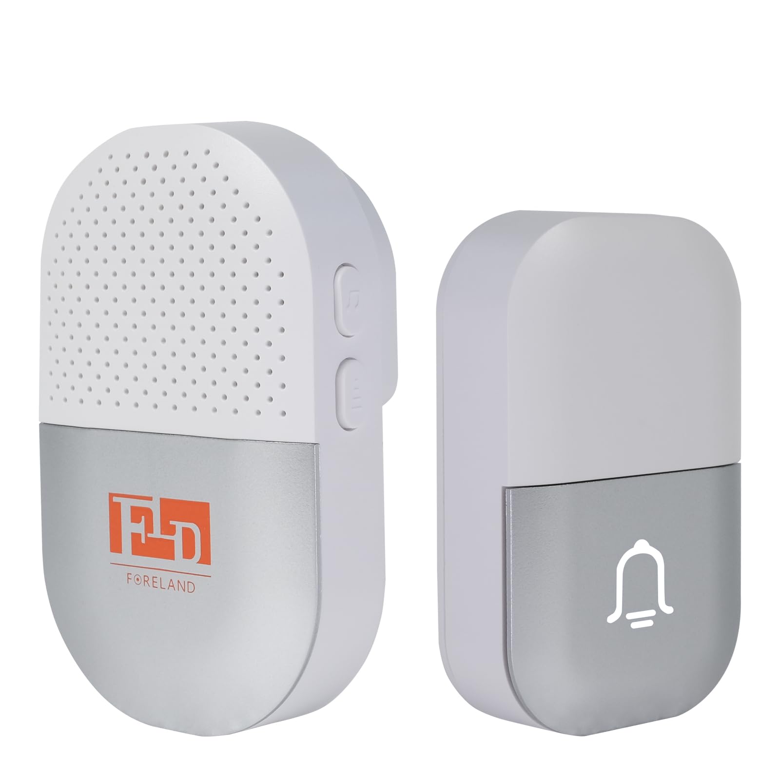 FORELAND – Timbre inalámbrico alimentado por batería, timbre de puerta de 110 db, timbre inalámbrico, 38 melodías funciona con un