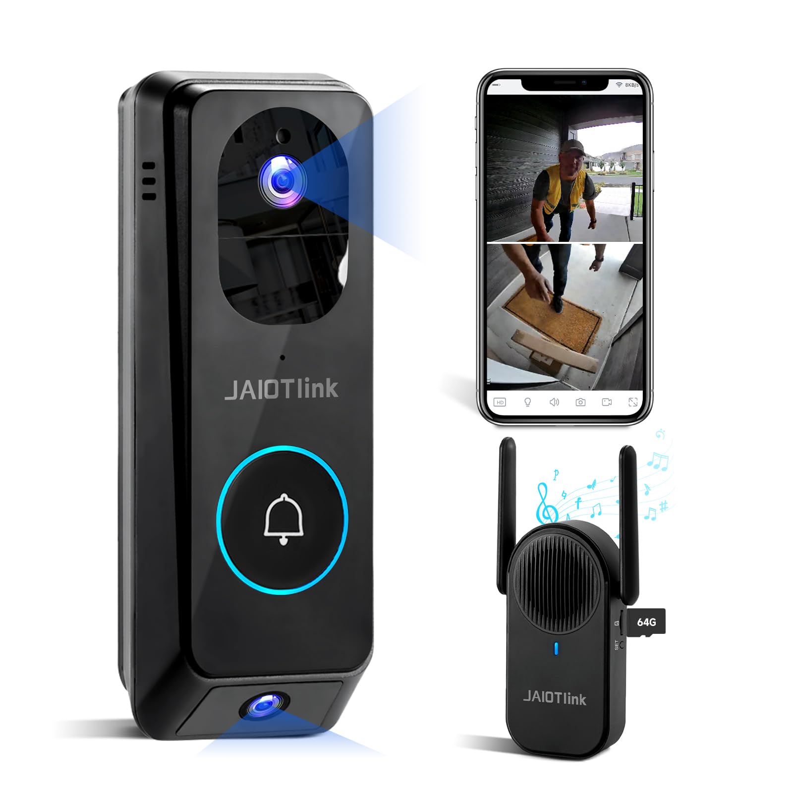 Timbre de video de doble lente 2K inalámbrico con timbre, protección del paquete, tarjeta SD de 64 GB, cambiador de voz, audio bid