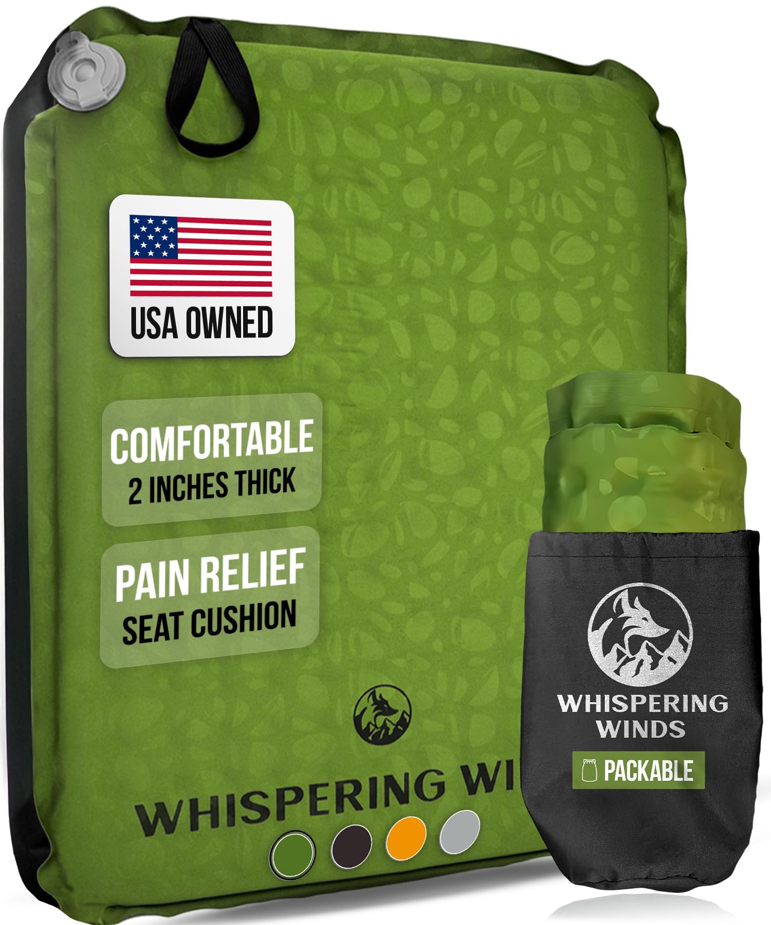 Whispering Winds Cojín inflable para asiento, cómoda almohadilla de espuma inflable para avión, viajes, estadio, camping y coche