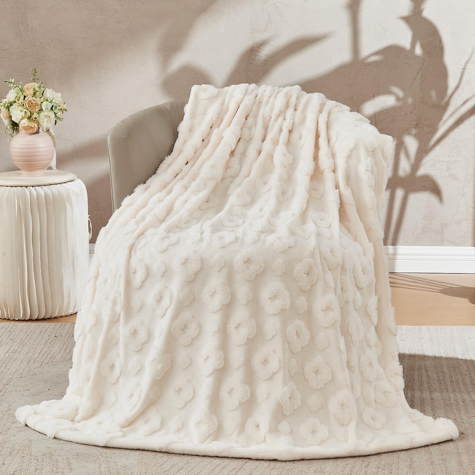 EMME Manta suave y esponjosa tamaño Queen de 80 x 90 pulgadas, color crema, suave, esponjosa, cálida, para cama, campamento, picni