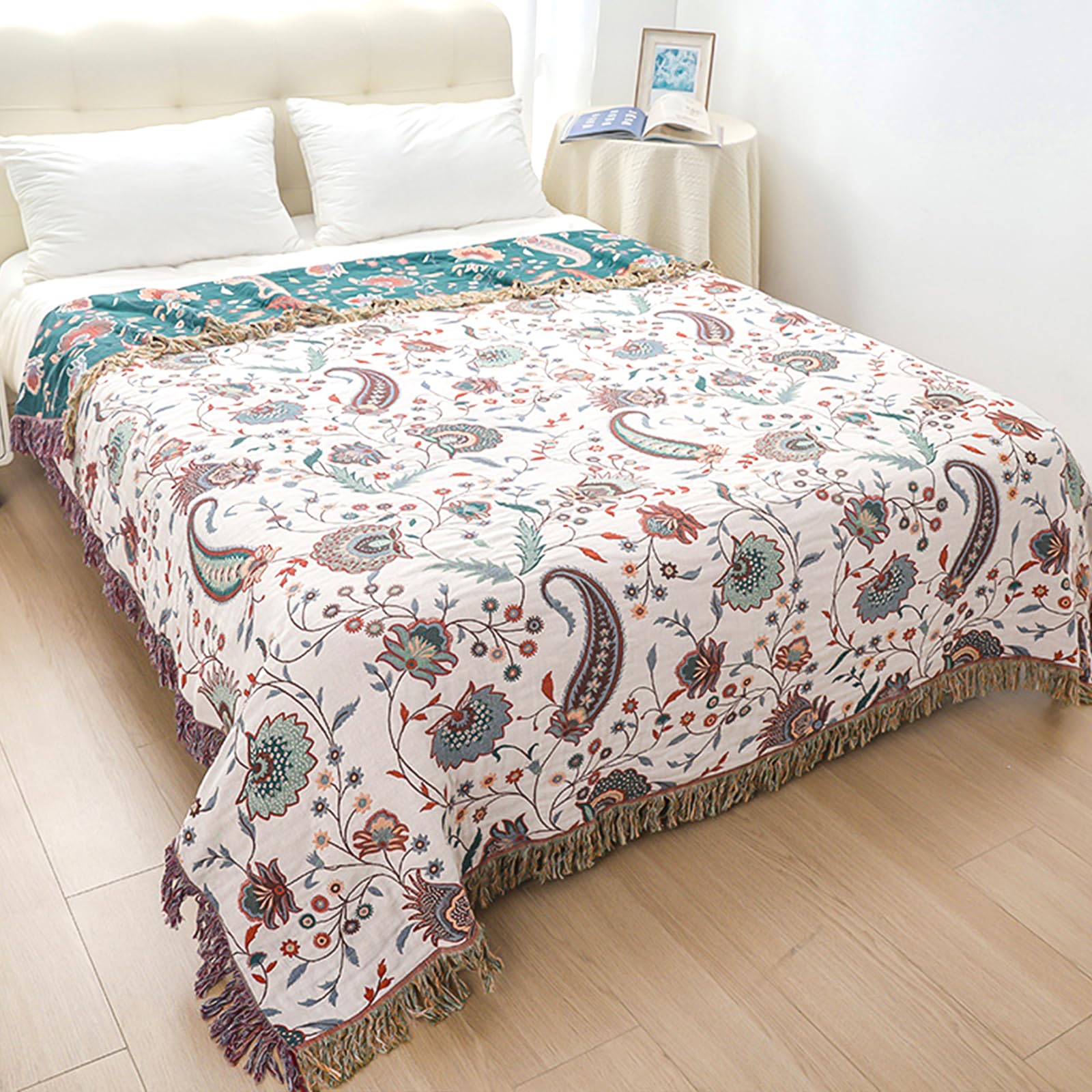 Manta grande bohemia 100% algodón, para todas las estaciones, rústica, ultrasuave, transpirable, con diseño floral para cama, sofá