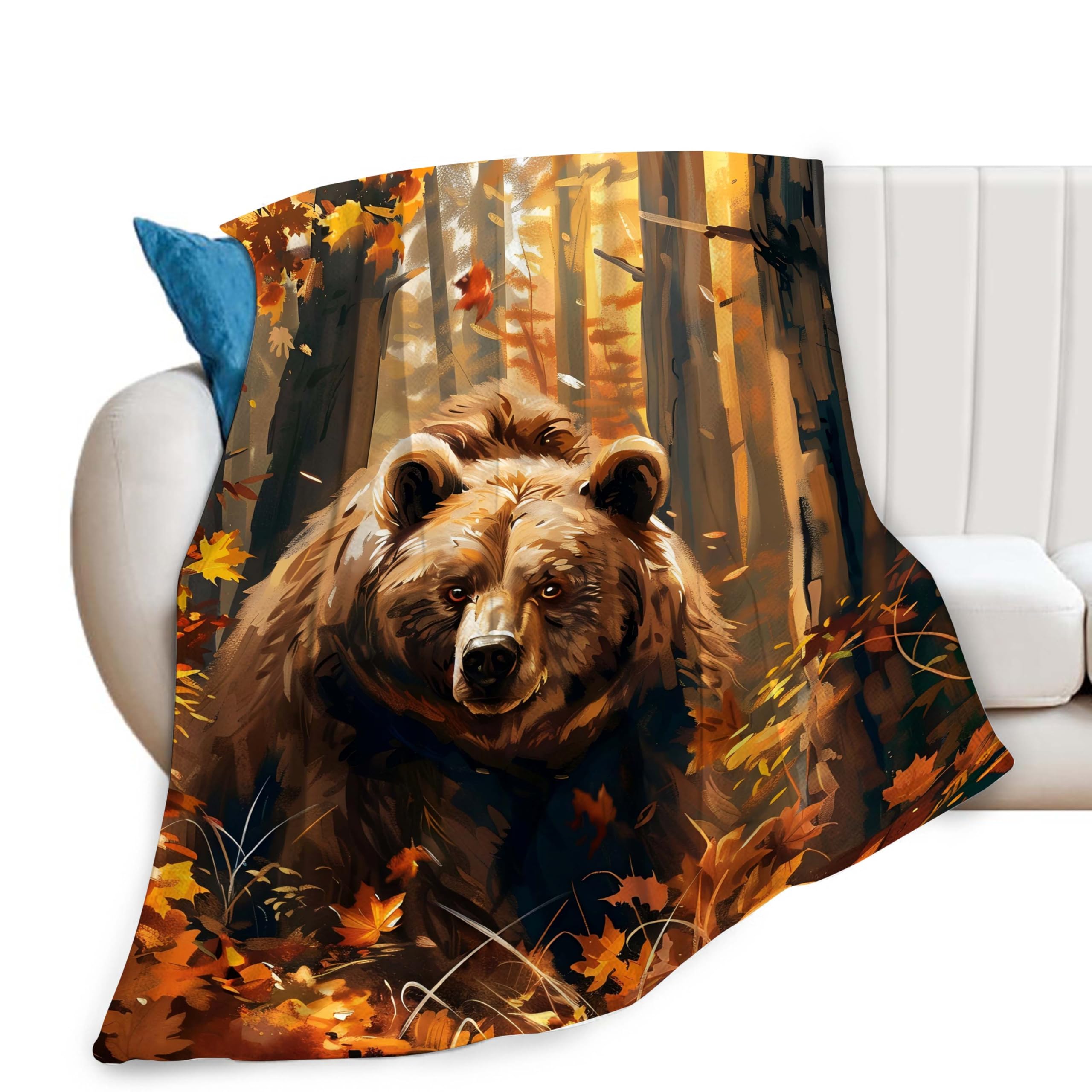 Manta de osos con diseño de oso del bosque, regalos para niñas, niños, amantes de los osos, ropa de cama de invierno, cálida y sua