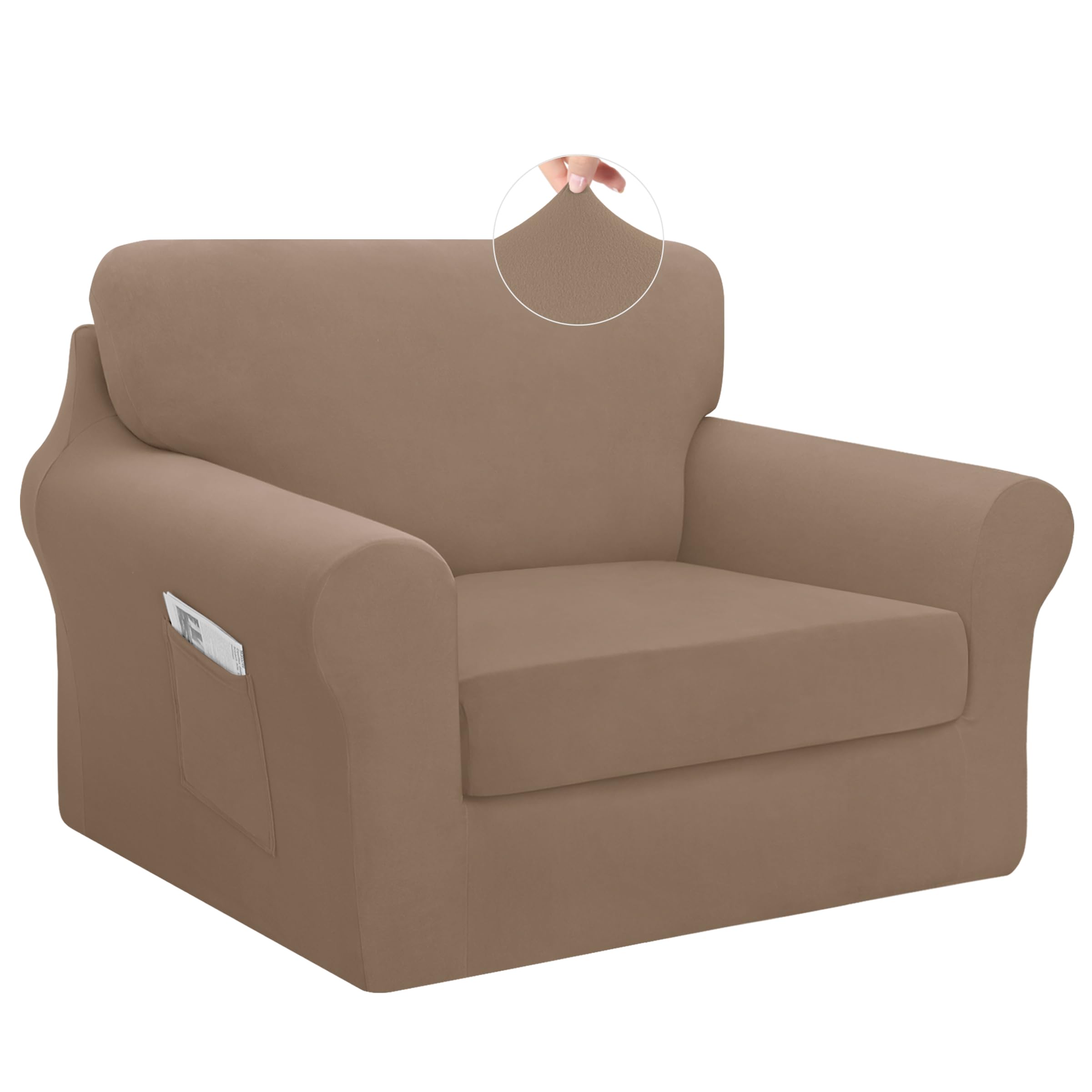 Easy-Going Juego de 3 fundas elásticas para silla, lavables, para 1 respaldo y cojín de asiento, funda antideslizante para sofá, p