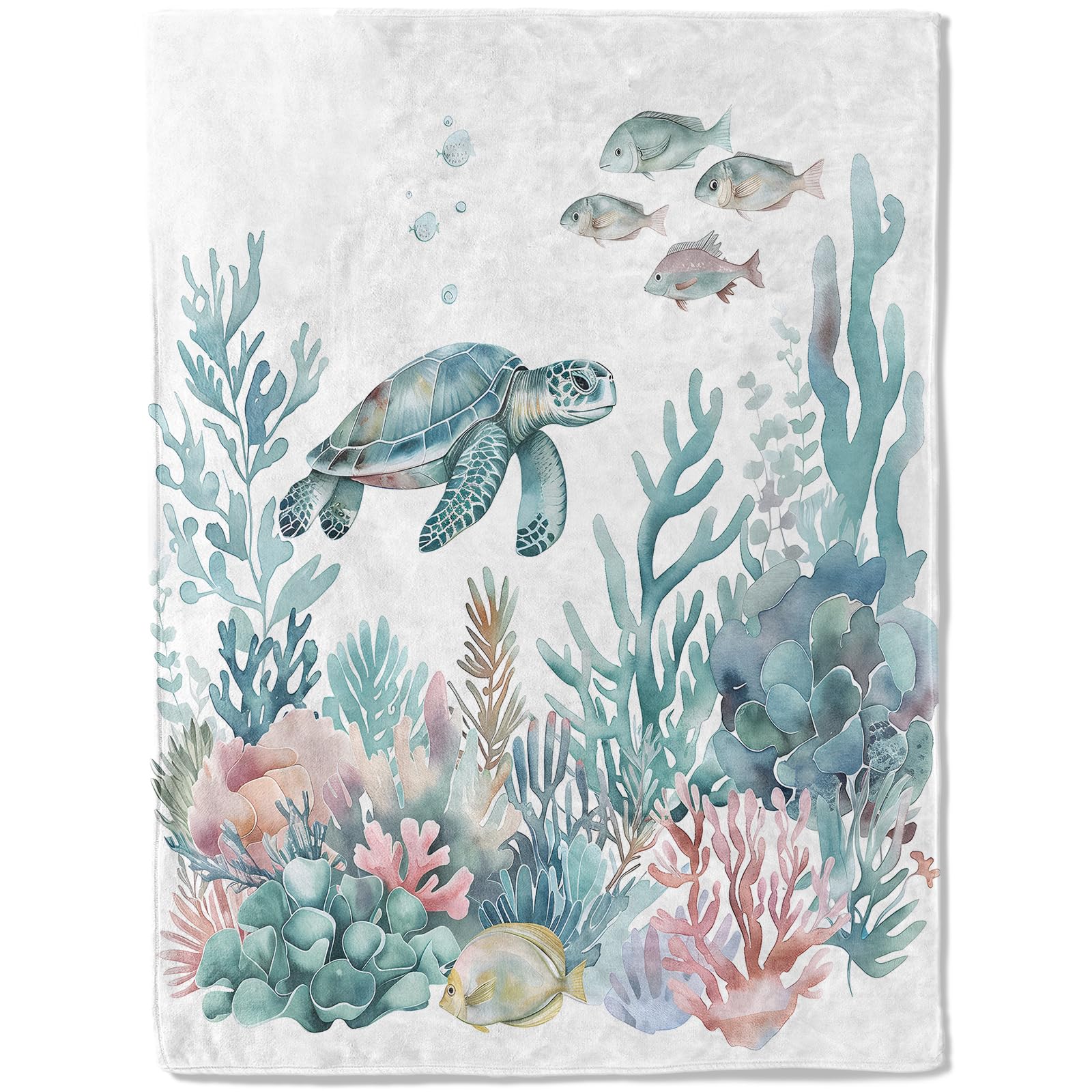 Manta de franela de tortuga marina y coral, océano tranquilo con manta de color pastel, ligera, suave y acogedora manta de regalo