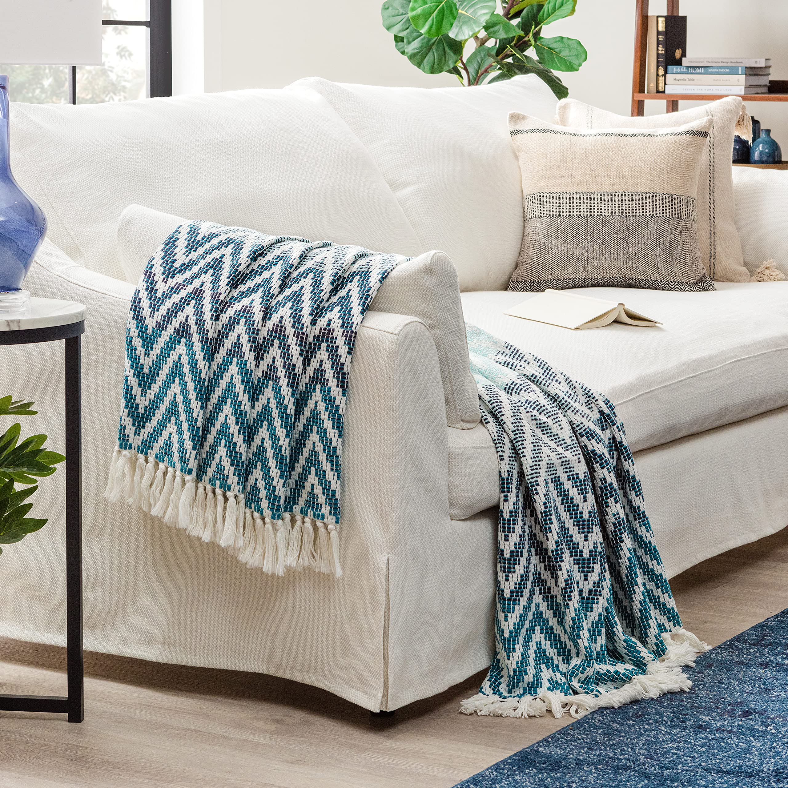 Superior Manta de tejido de canasta 100% algodón, perfecta para dormitorio, sala de estar, sofá, picnic, viajes, playa o campament
