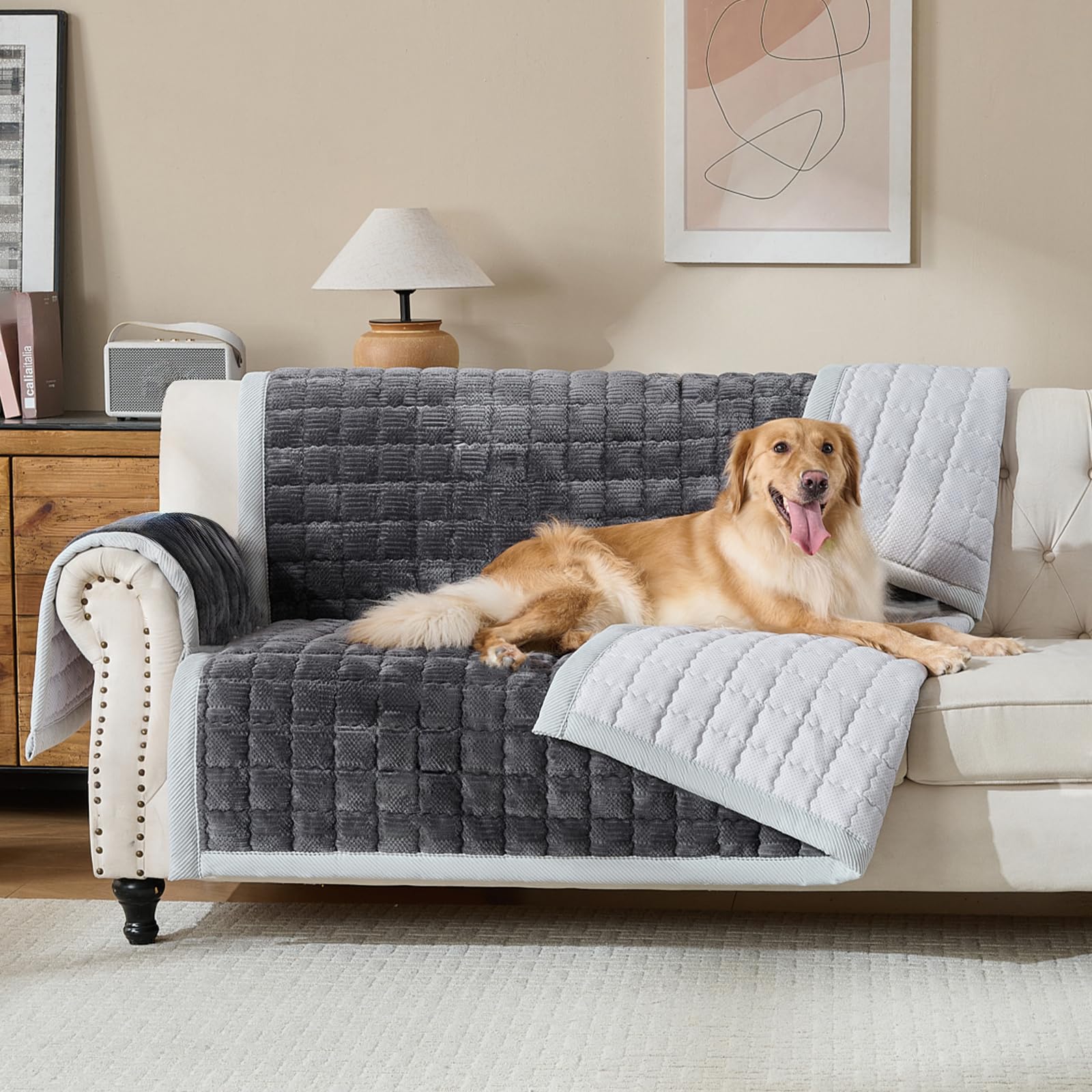Funda de sofá para mascotas, protector de sofá acolchado, color gris