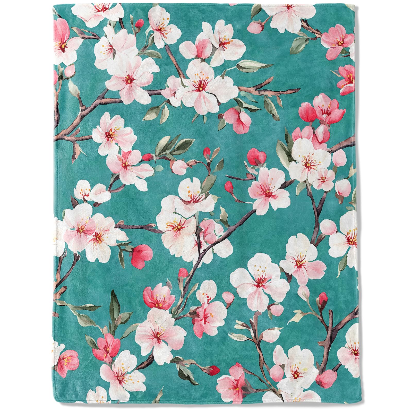 Manta de franela de ramas de cerezo en flor, ligera, suave y acogedora, manta de regalo única para amantes de las flores, niños, a