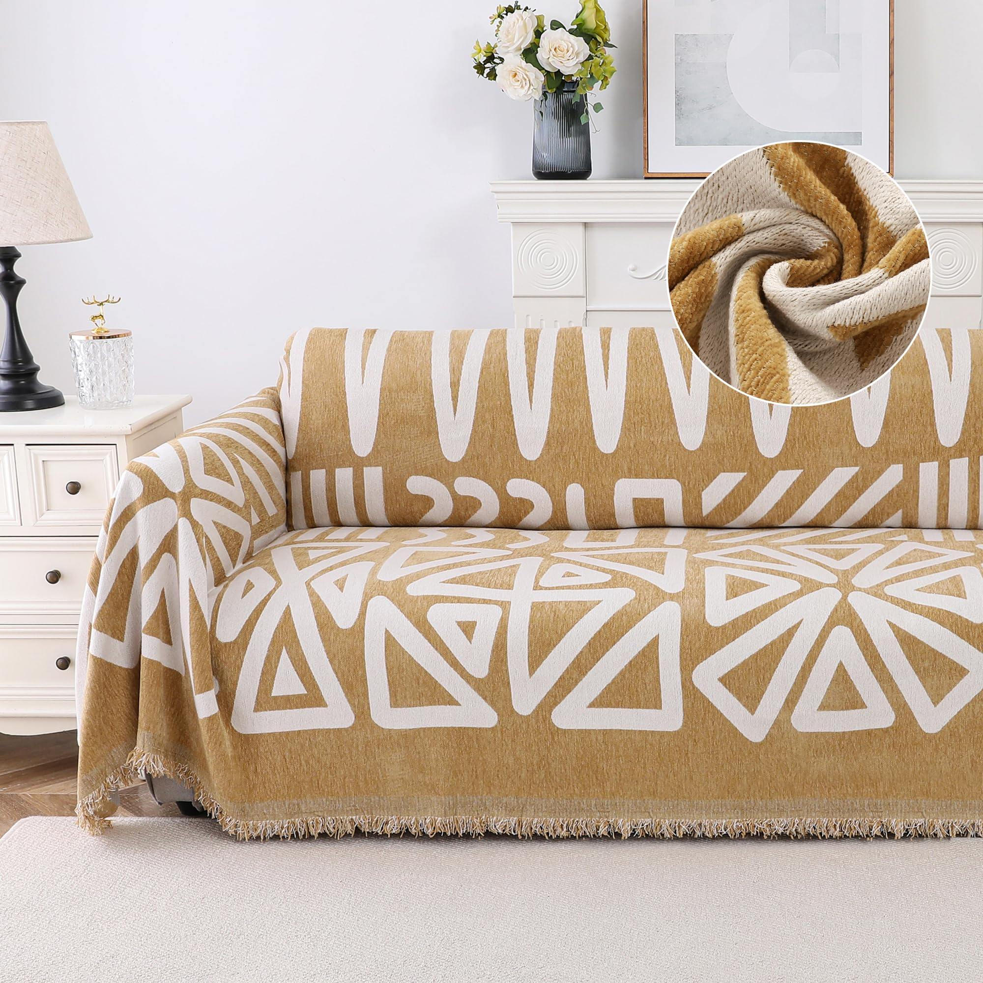 Turquoize Funda bohemia de felpilla lavable para sofá de 3 plazas, color caqui, triangular, funda para sofá modular, funda de sofá
