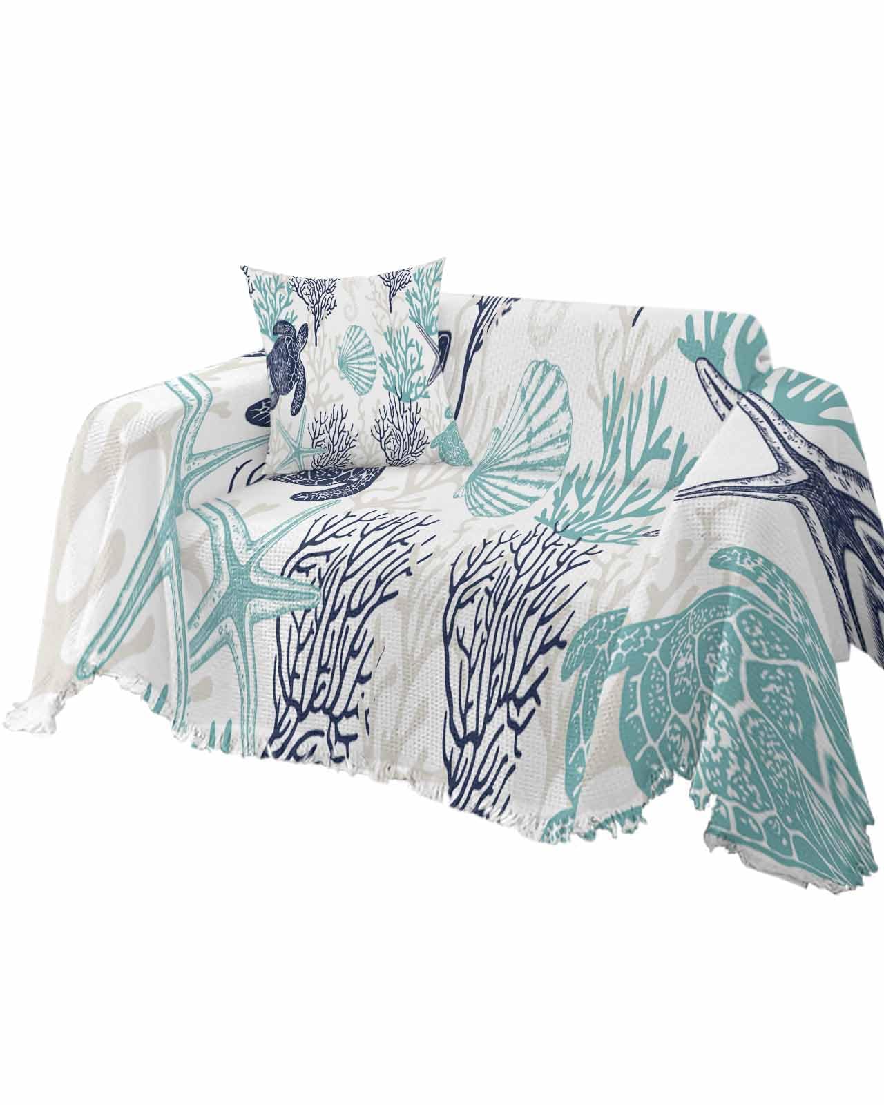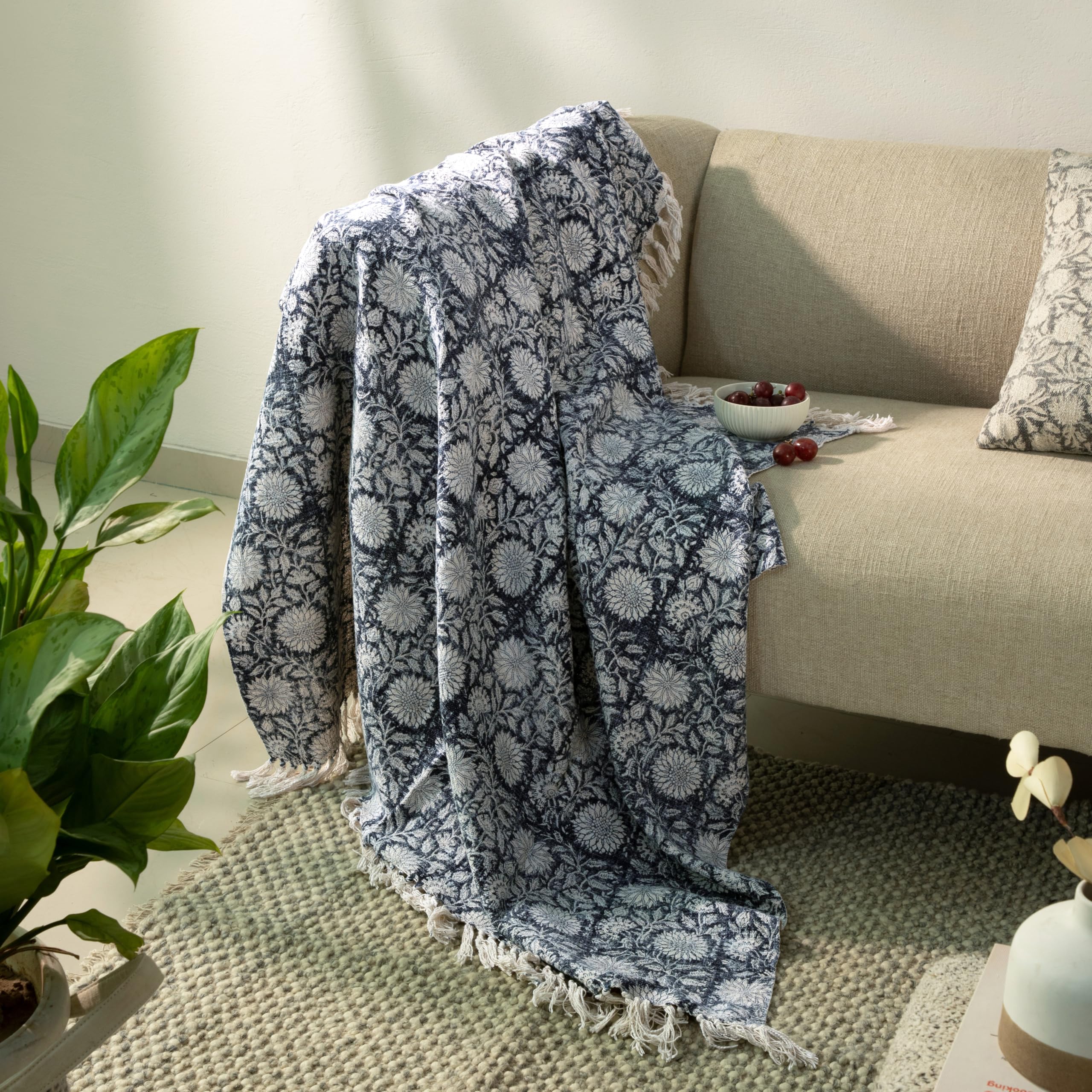 Manta de algodón 100% puro con estampado a mano, suave de 50 x 60 pulgadas, con flecos para sofá, silla, cama, acogedora, lavable