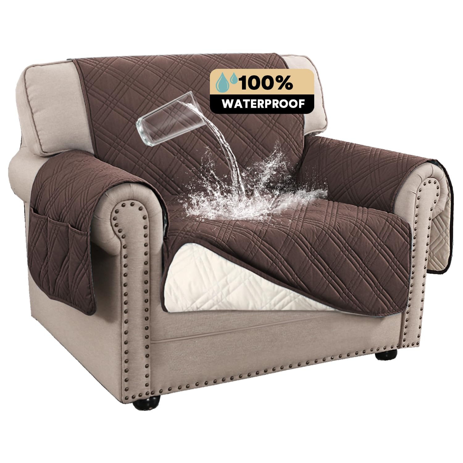 PrinceDeco Funda 100% impermeable para sofá de silla, resistente al agua, para sala de estar, protector de muebles con correas elá