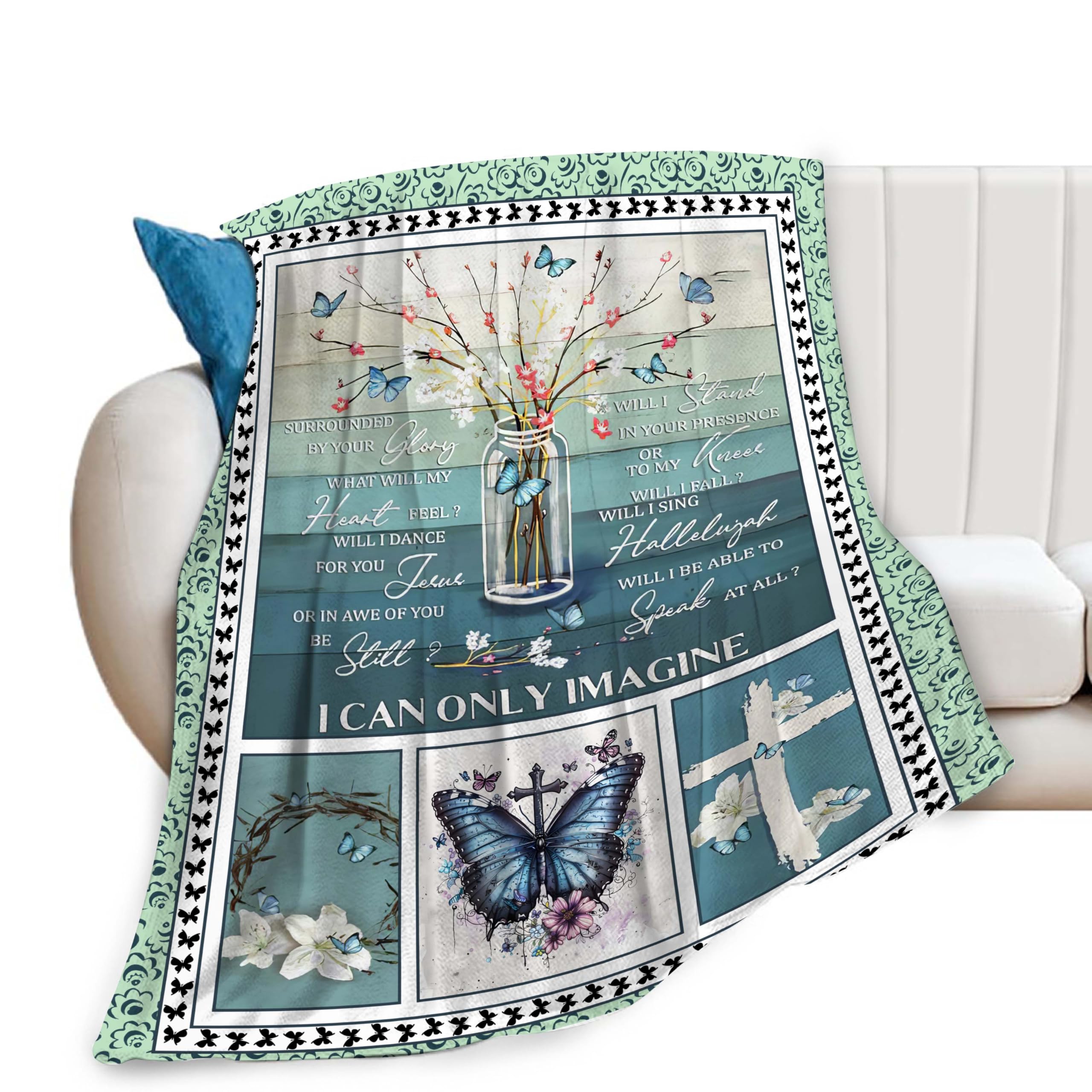 Manta cristiana con diseño de flores y mariposas con texto en inglés “I Can Only Imagine”, manta de oración religiosa, regalos ins