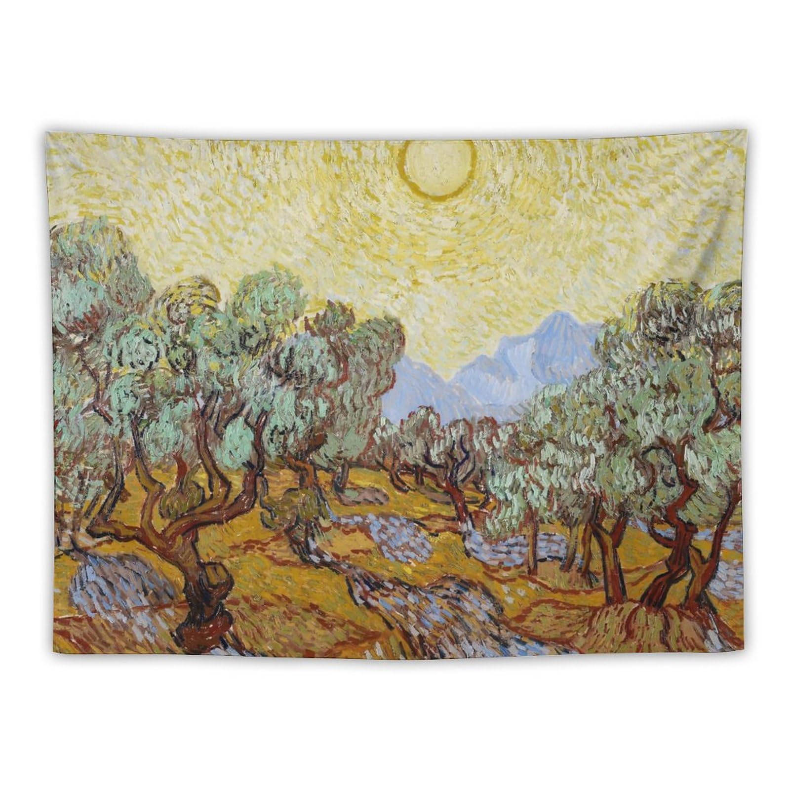 Van Gogh – Tapiz artístico de olivos con cielo amarillo y sol, cortina para colgar en la pared, decoración de dormitorio, hogar, s