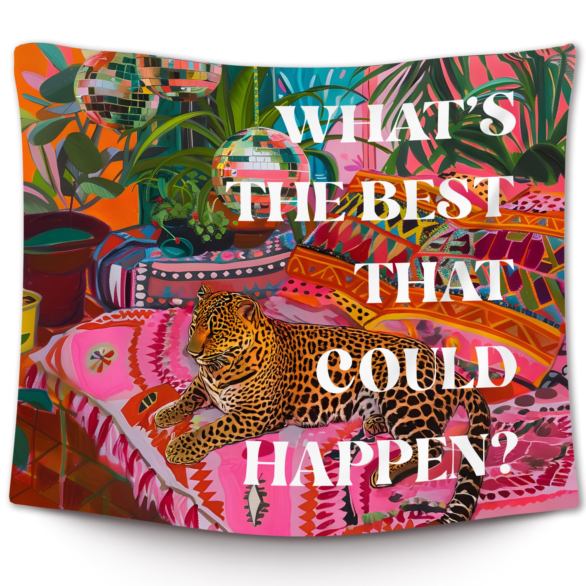 XLDLIOO Preppy – Tapiz de pared con diseño de leopardo con diseño de disco de leopardo “What’s the Best That Could Happen”, tapiz
