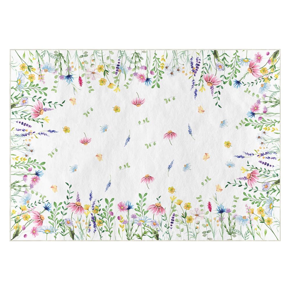 Wonnitar Alfombra lavable de 5 x 7 pies para sala de estar, alfombra grande con estampado floral, alfombra antideslizante para mes