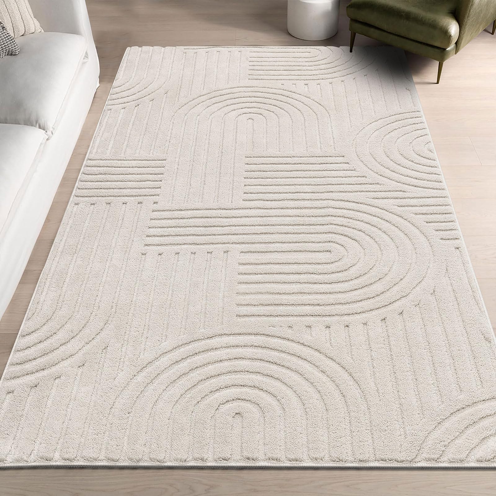 SHACOS Alfombra suave y esponjosa con patrón de arco de 2 pies 7 pulgadas x 5 pies, antideslizante, lavable, minimalista, moderna,