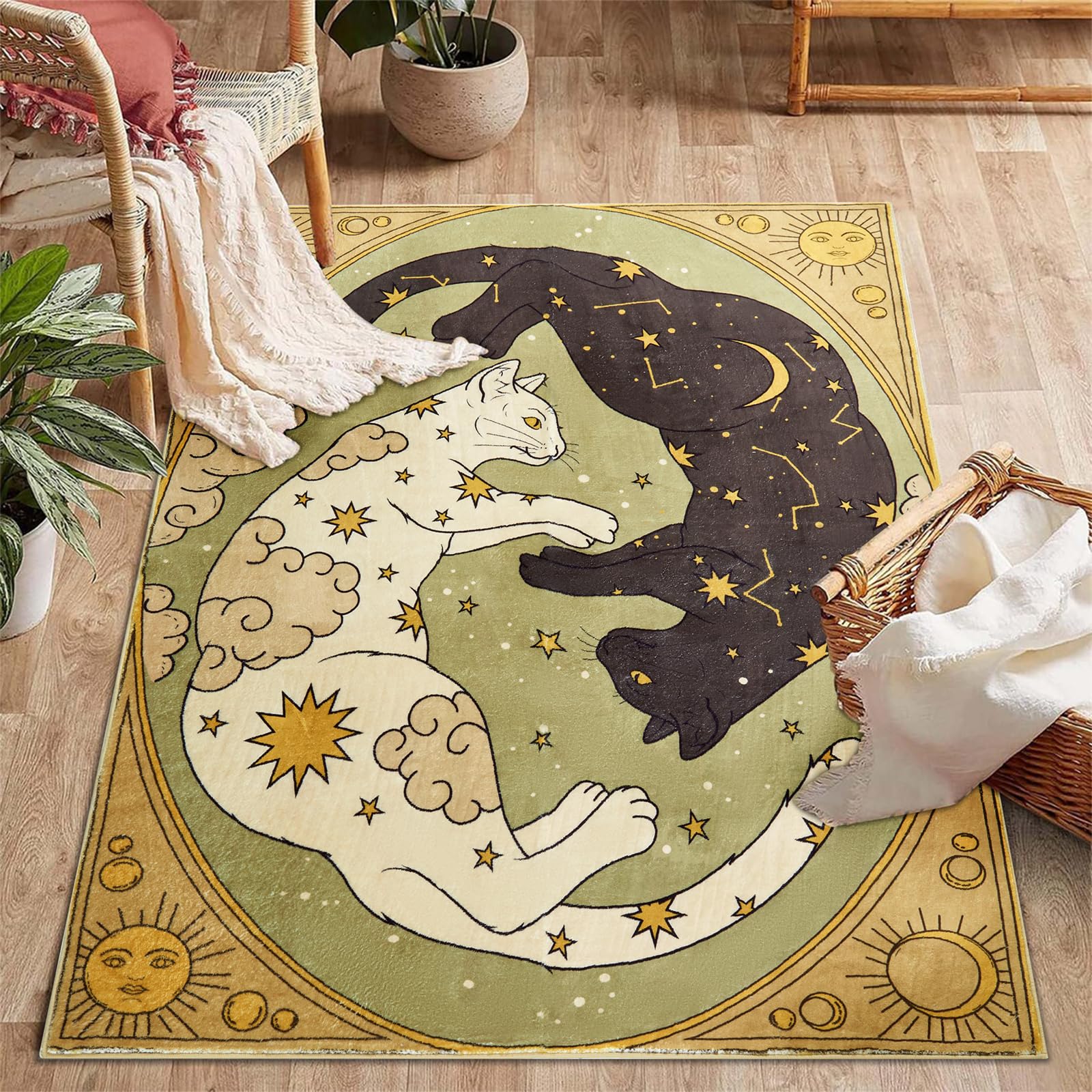 Estmy Bonita alfombra de entrada de gato místico, lavable, antideslizante, de 3 x 5 pulgadas, ultra fina, caprichosa, vintage, ret
