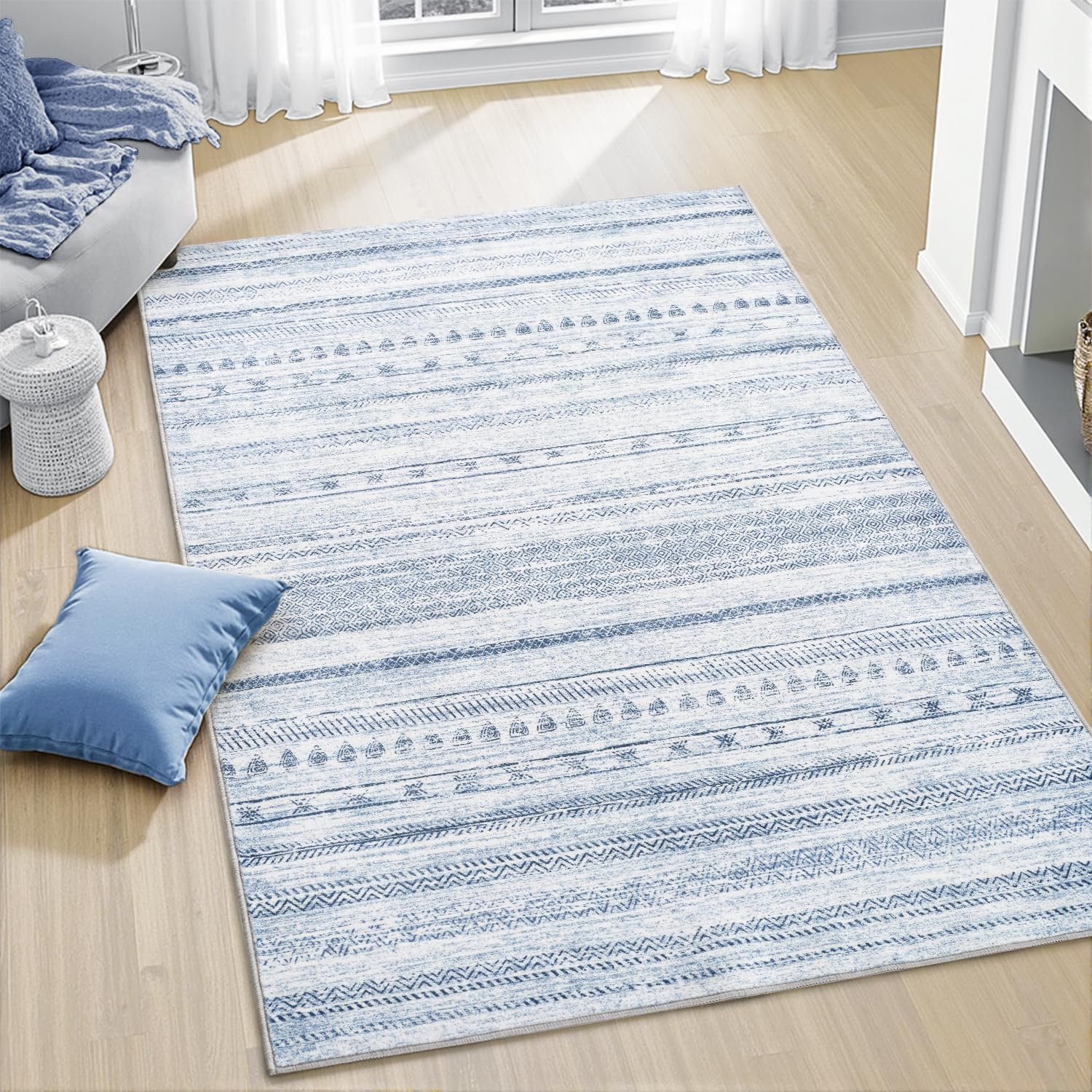 Nakagishi – Tapete de 5 x 8 pies para sala de estar: lavable, bohemio rústico moderno, suave, resistente a manchas, antideslizante