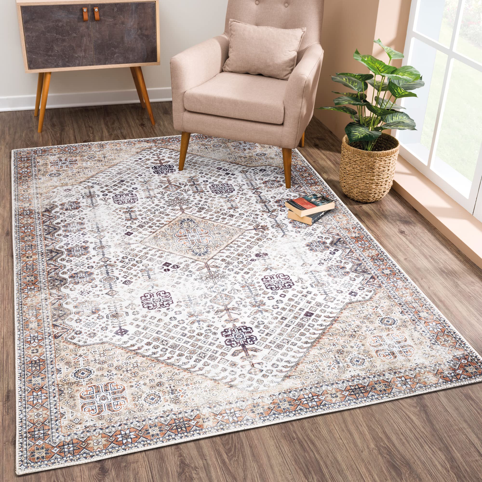 MontVoo -Alfombra vintage de 5 x 7 pulgadas, color beige, para sala de estar, alfombras estampadas suaves y desgastadas para dormi