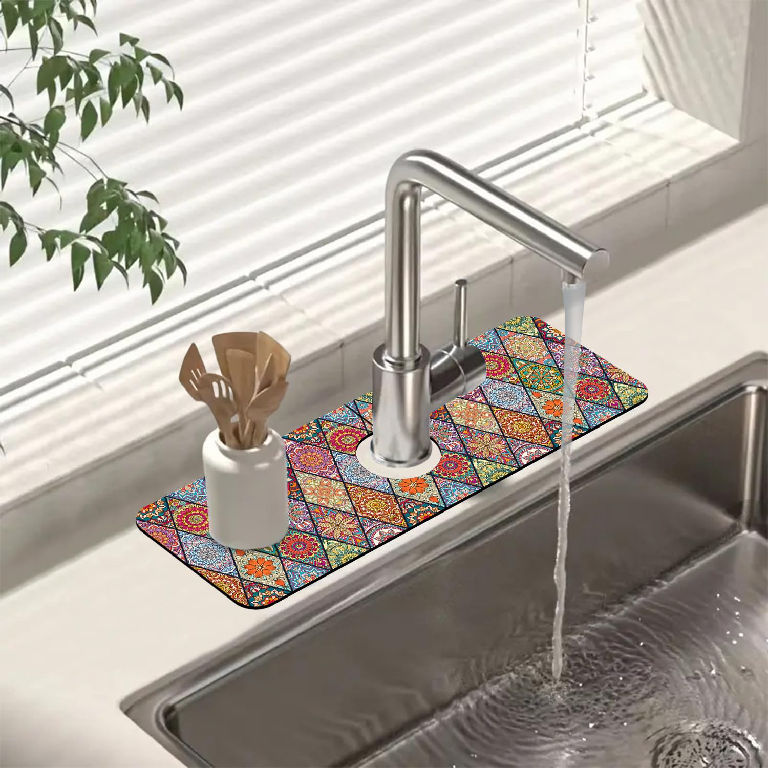 Tapete absorbente para grifo de fregadero, alfombra textil bohemia, textura para fregadero, protector contra salpicaduras, tapete