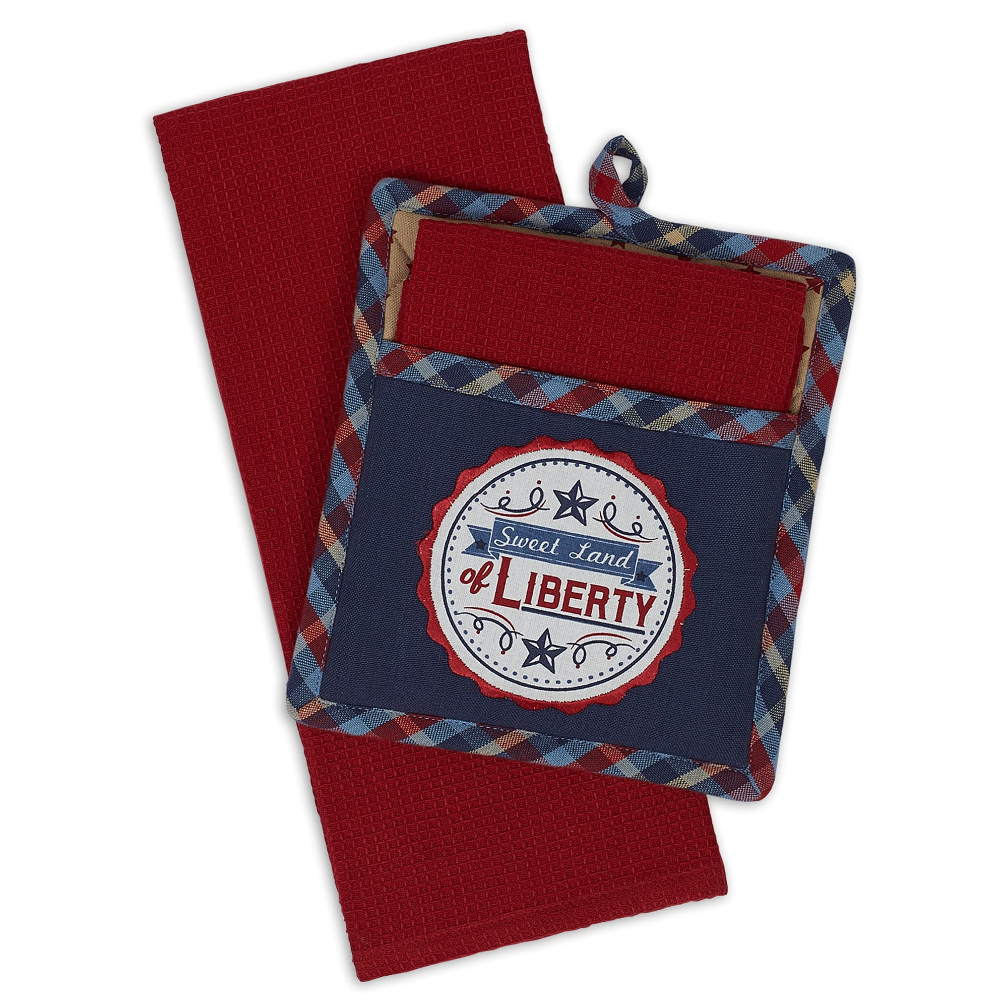 DII Kitchen Textile Collection, juego de regalo para agarraderas y paños de cocina, Land of Liberty, 2 piezas