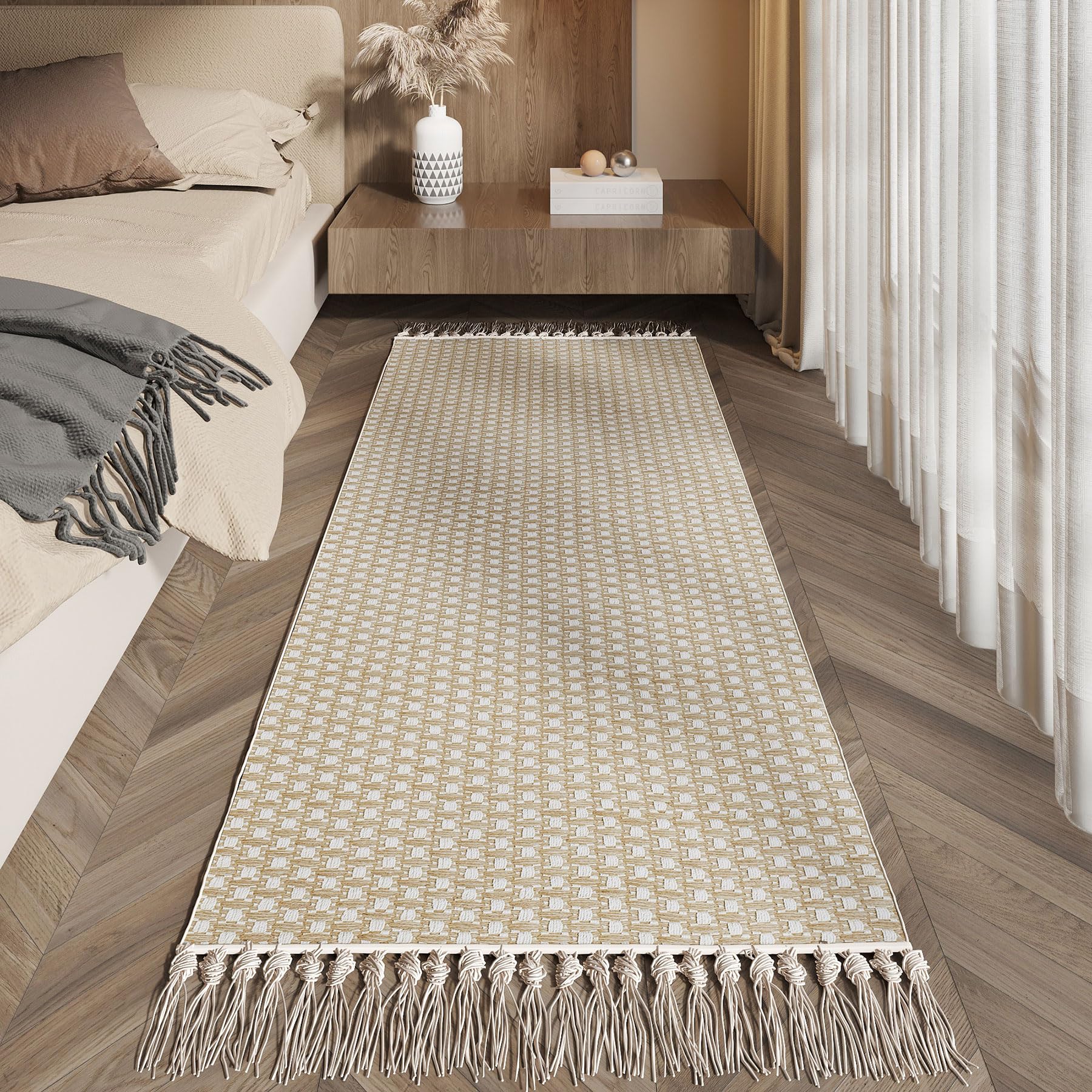 Alfombra bohemia lavable de 2 x 6 pies, con parte trasera de goma antideslizante, alfombra tejida con borlas, para pasillo interio