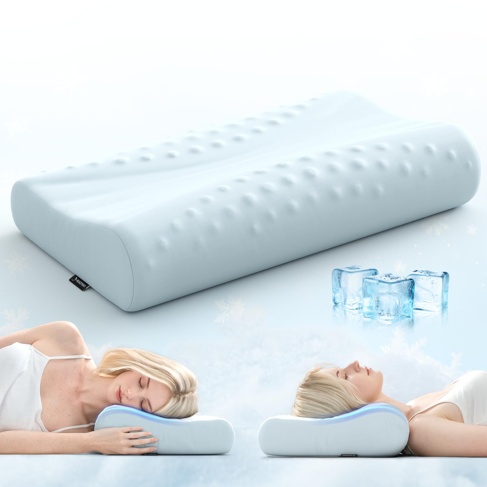 Almohada cervical para dormir – Almohada de contorno de espuma viscoelástica patentada – Diseño ergonómico de 2 alturas para perso