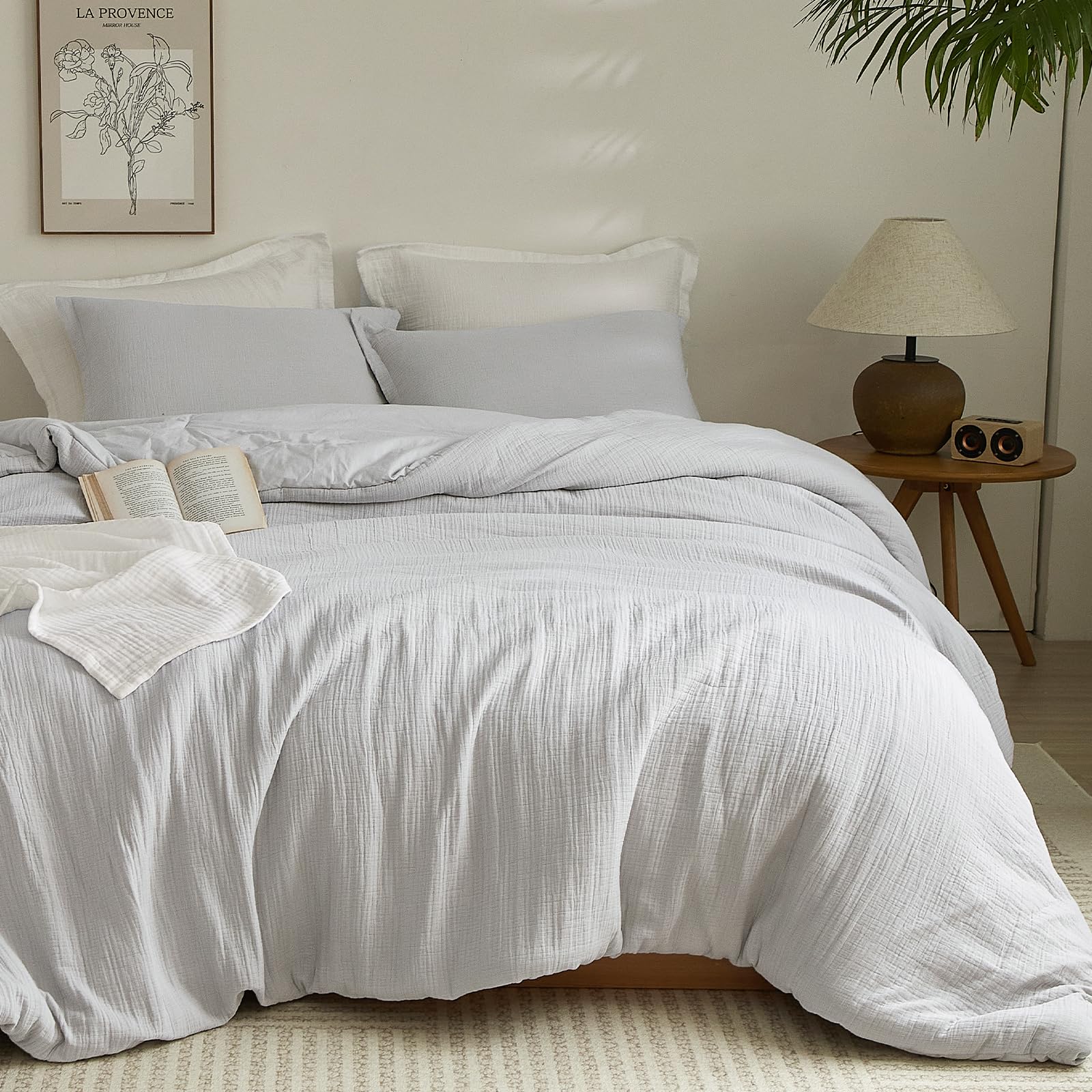 Jiyuan Juego de funda de edredón 100% algodón lavado, cómodo, estilo simple, suave, transpirable, texturizado, duradero, sensación