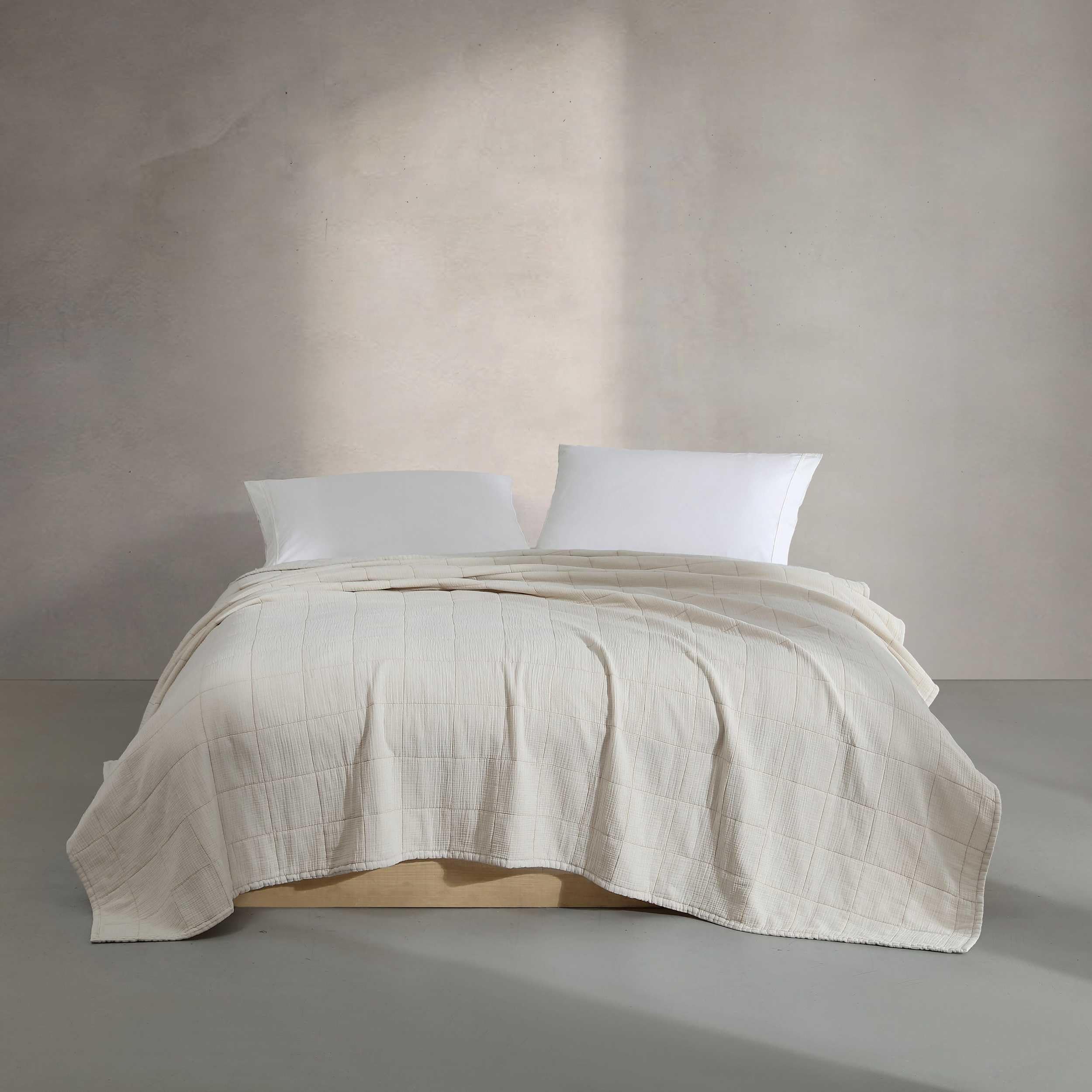 Calvin Klein – Juego de edredón King, ropa de cama de gasa de algodón con fundas a juego, diseño de puntada de caja, ligero y aire