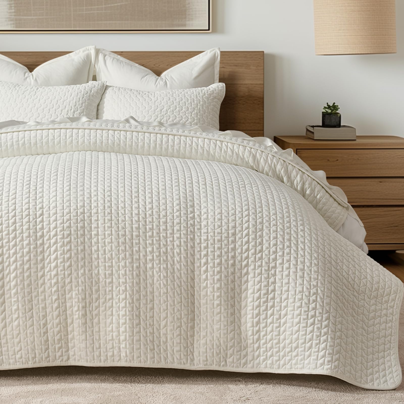 Cupocupa Juego de edredón beige tamaño Queen, 3 piezas, juego de ropa de cama con volantes, tamaño Queen con edredón, ligero, suav