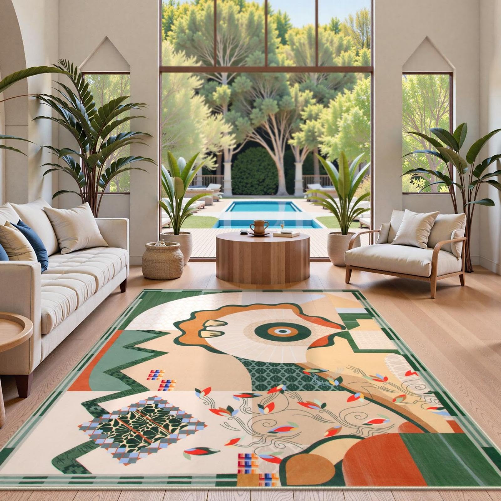 Lahome Alfombras bohemias de color verde de 6 x 9 pies para sala de estar, lavables, suaves, antideslizantes, para dormitorio, com
